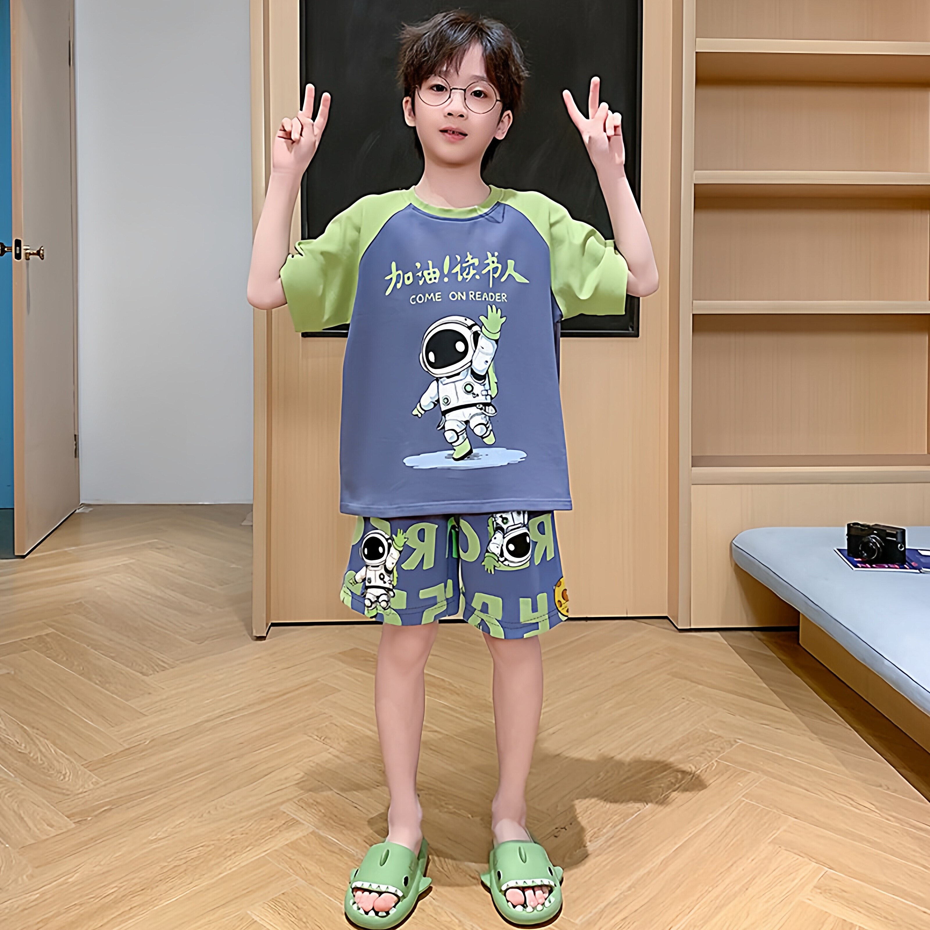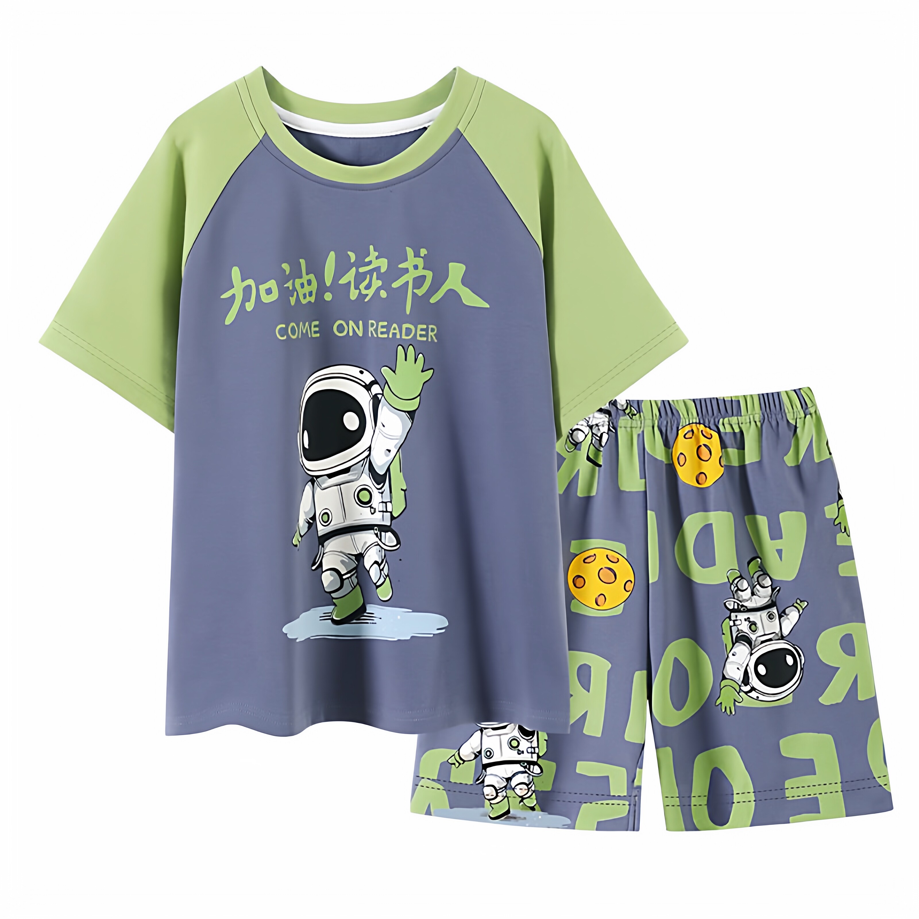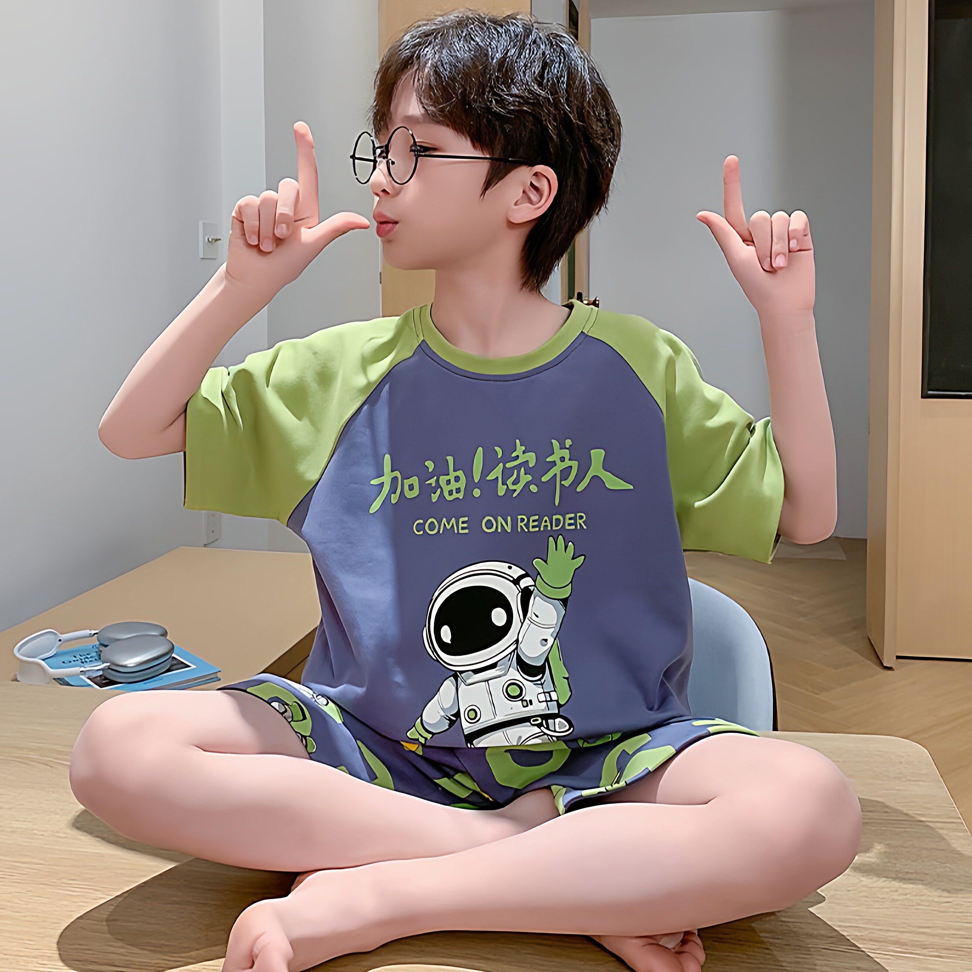 儿童睡衣男孩纯棉夏季薄款短袖短裤2026新款大童男童青少年家居服