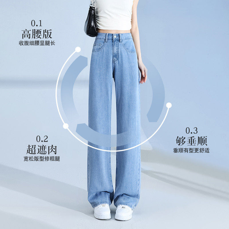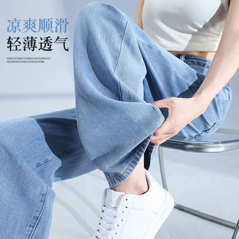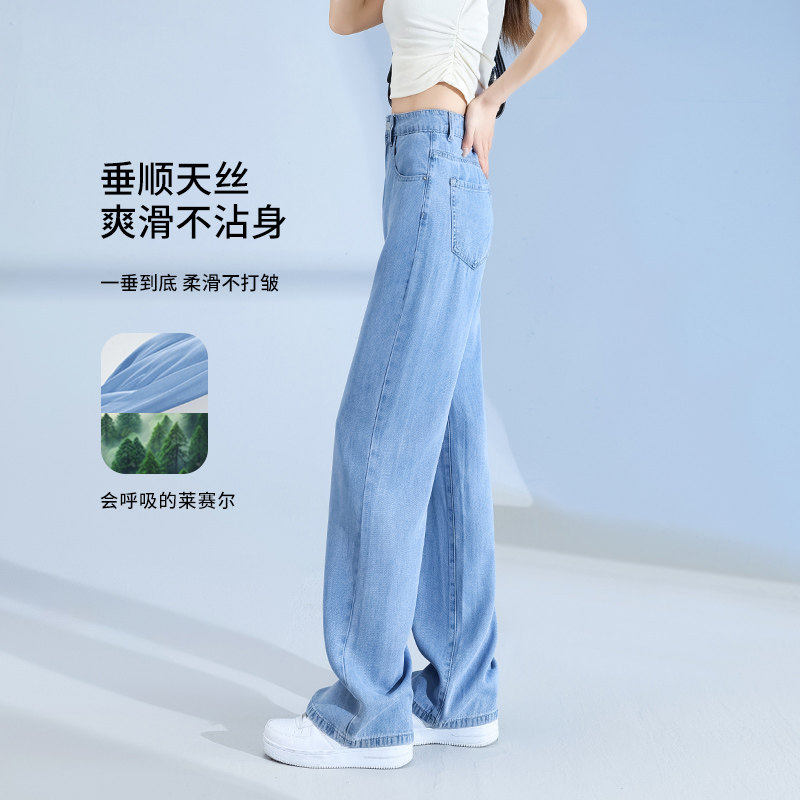 天丝牛仔裤女2026新款春季小个子显瘦直筒薄款莱赛尔宽松阔腿裤子