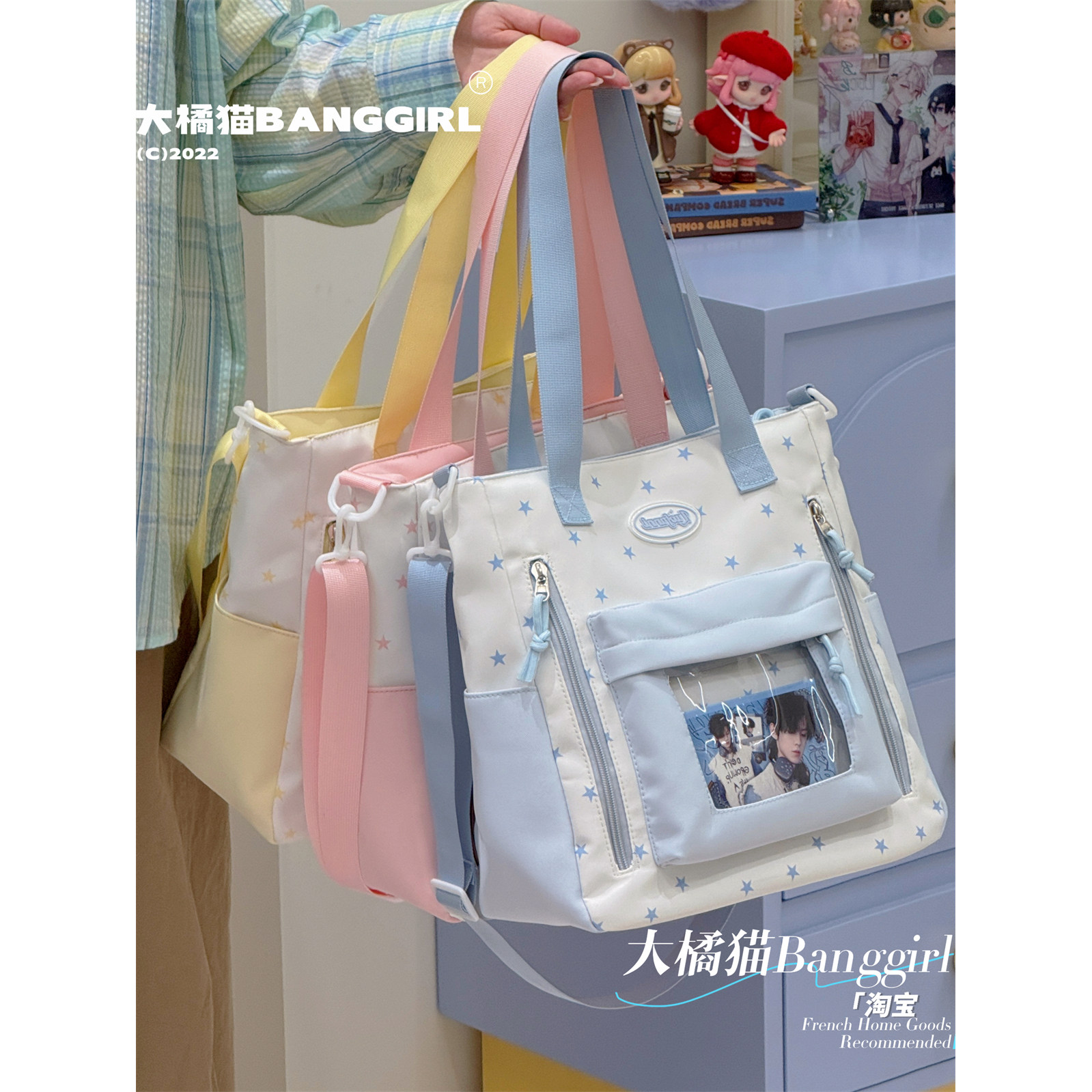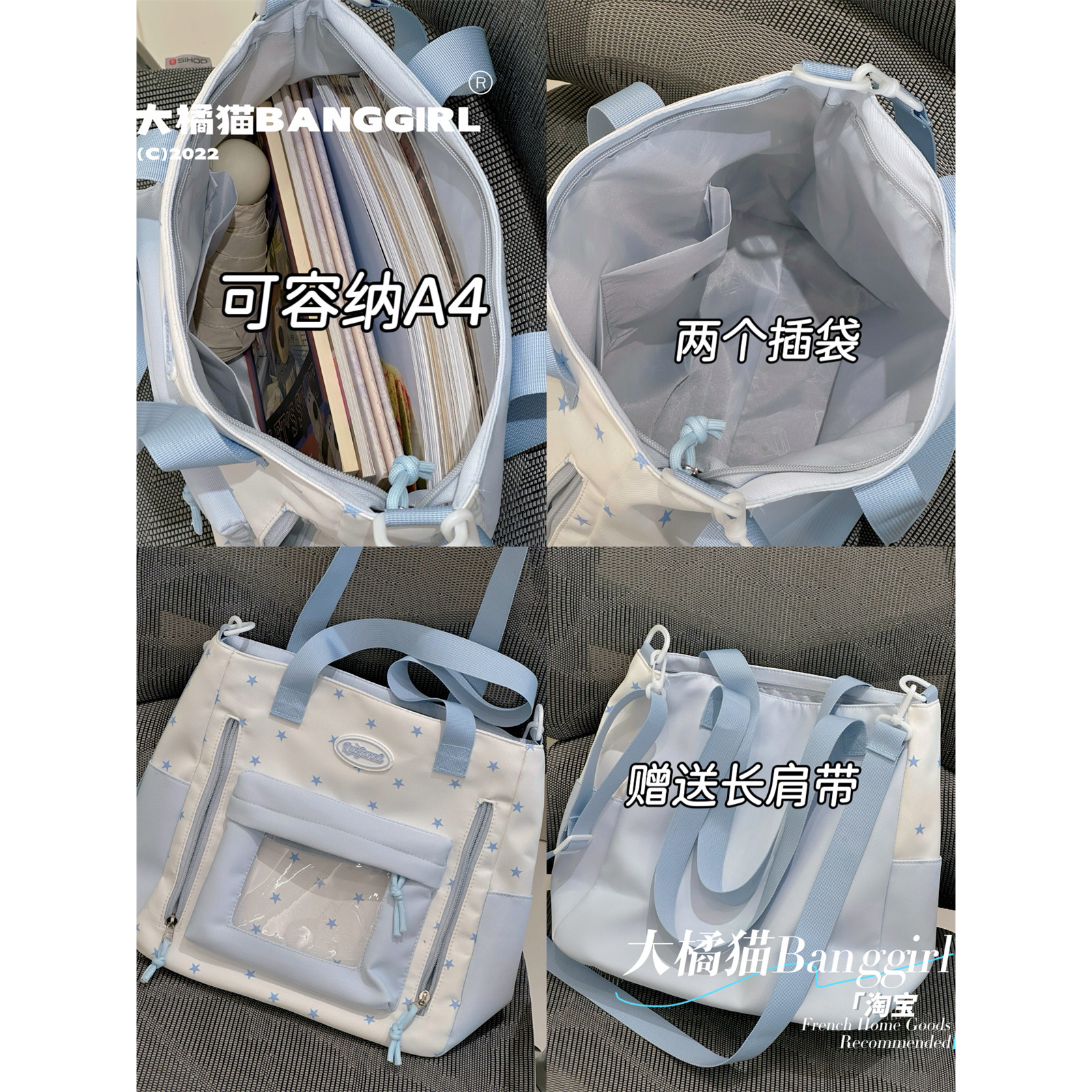 大容量通勤单肩包日系ins可爱星星托特包痛包学生上课补习斜挎包