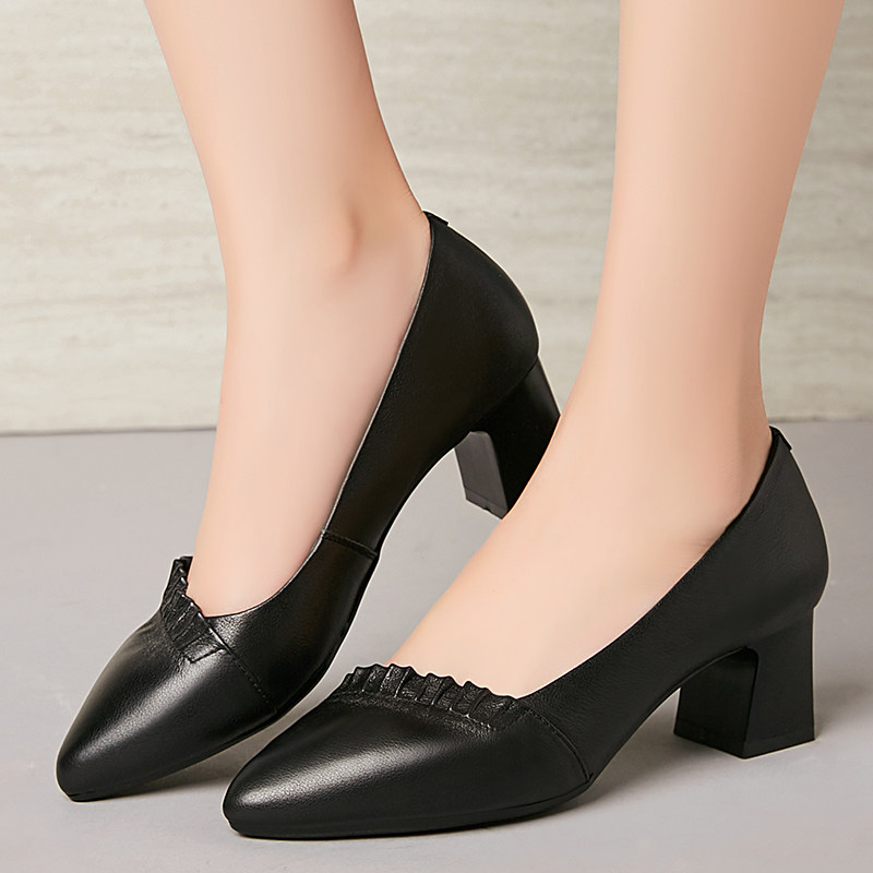 真皮中跟女士皮鞋粗跟中年妈妈红色鞋子女不累脚女鞋软底软皮单鞋