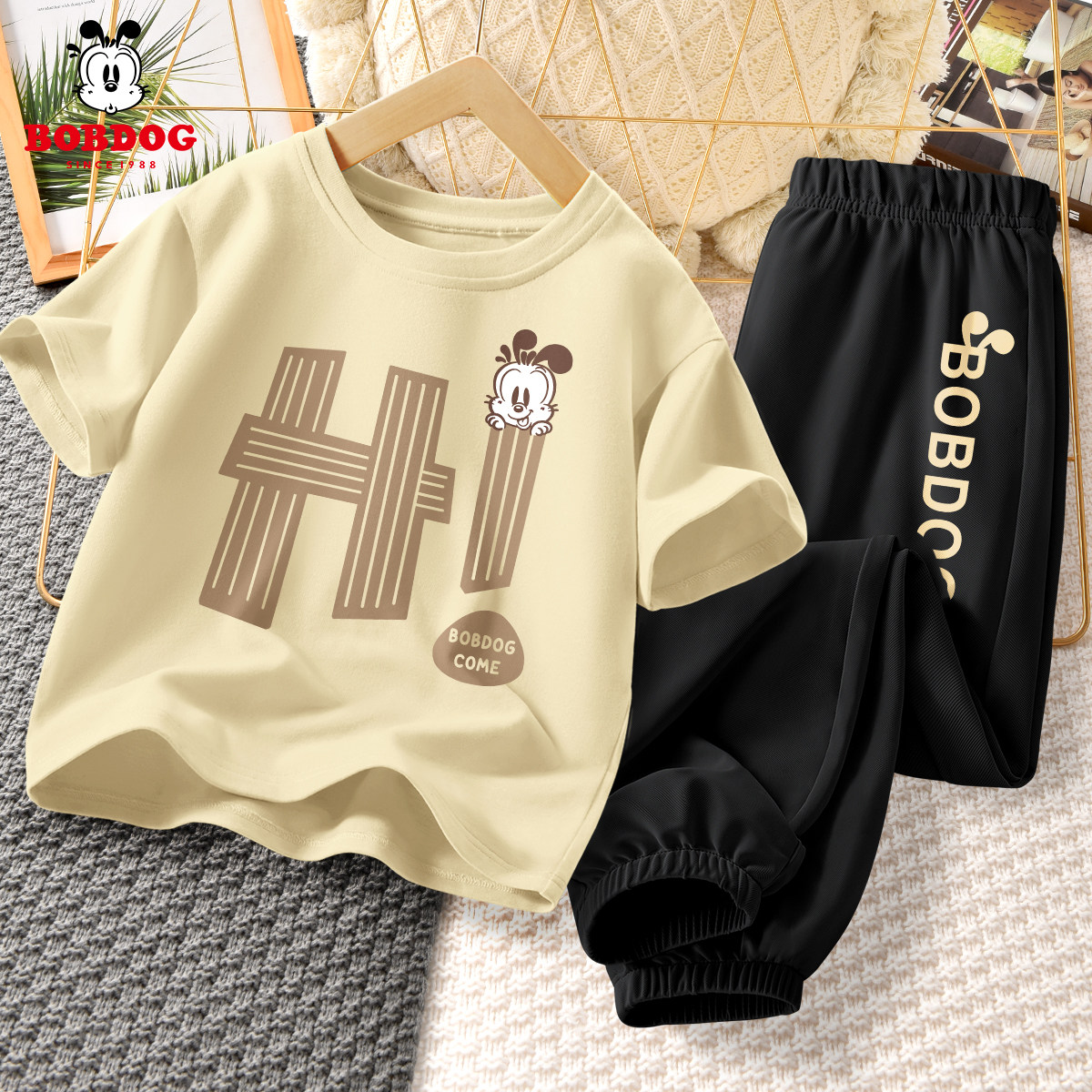 巴布豆男童套装夏季2026新款冰丝短袖t恤帅气男孩运动服儿童夏装
