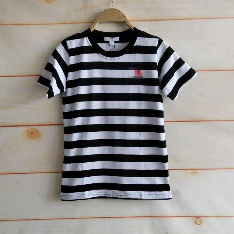 夏季圆领短袖T恤中大童纯棉条纹打底衫男女童套头半袖简约百搭潮