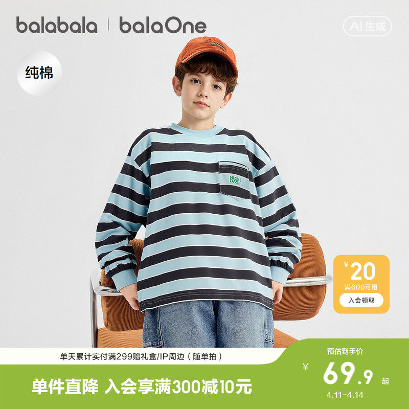 巴拉巴拉童装儿童长袖t恤男童2026春季新款上衣女童条纹速干衣服