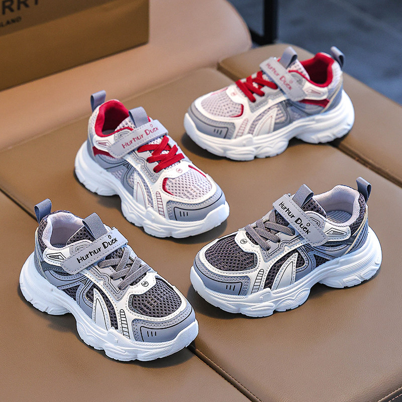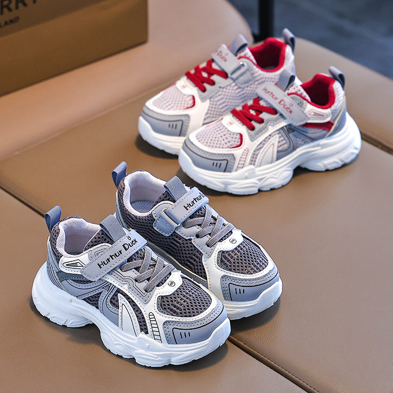 小黄鸭女童鞋子春款透气运动鞋儿童轻便夏季网面中大童单网老爹鞋