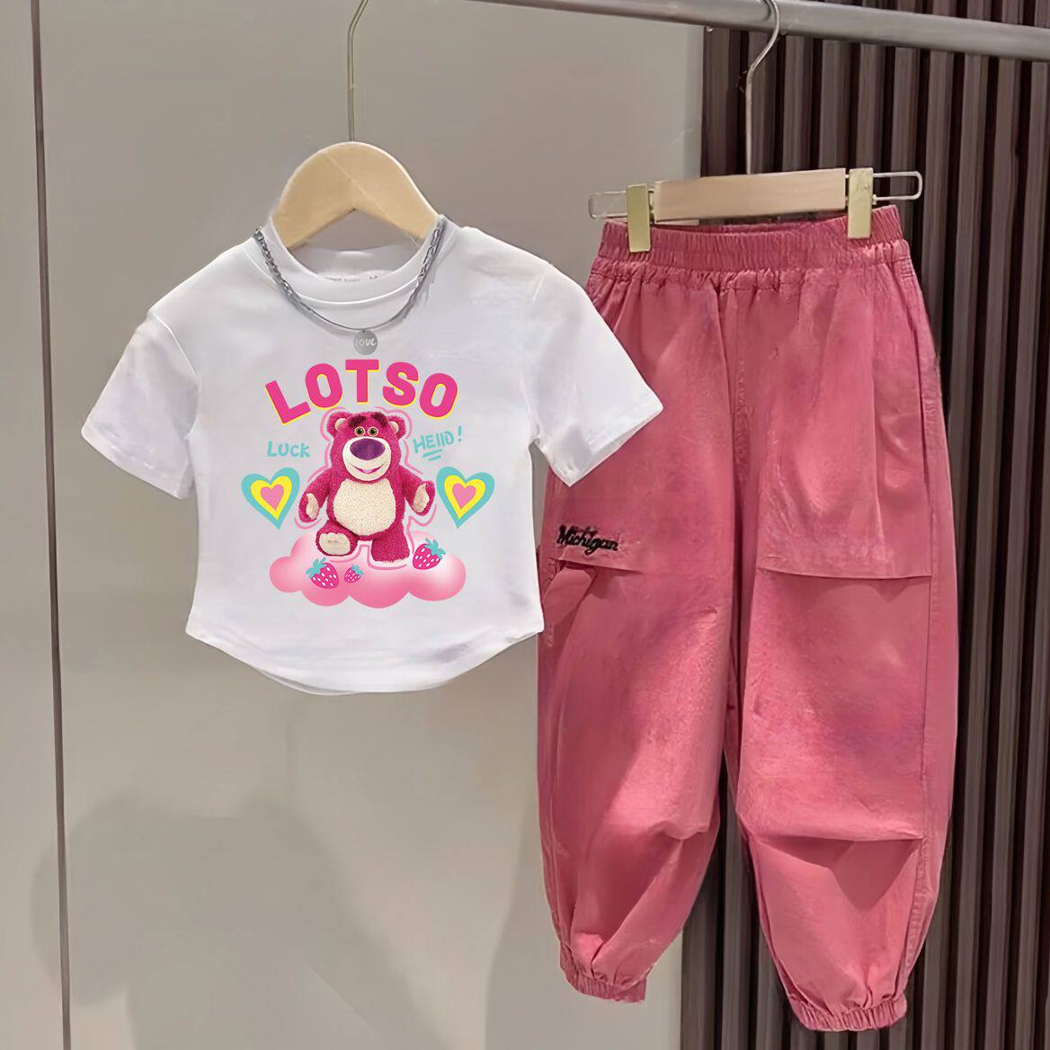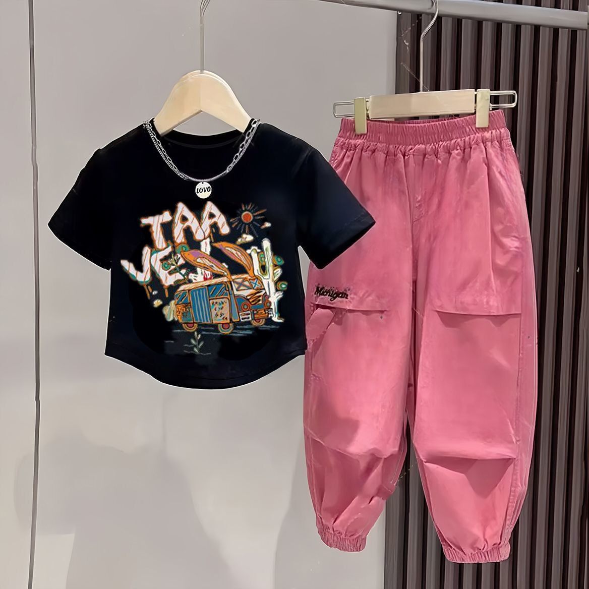 2025新款女童半袖夏季中童套装网红洋气时髦工装裤宽松时尚两件套