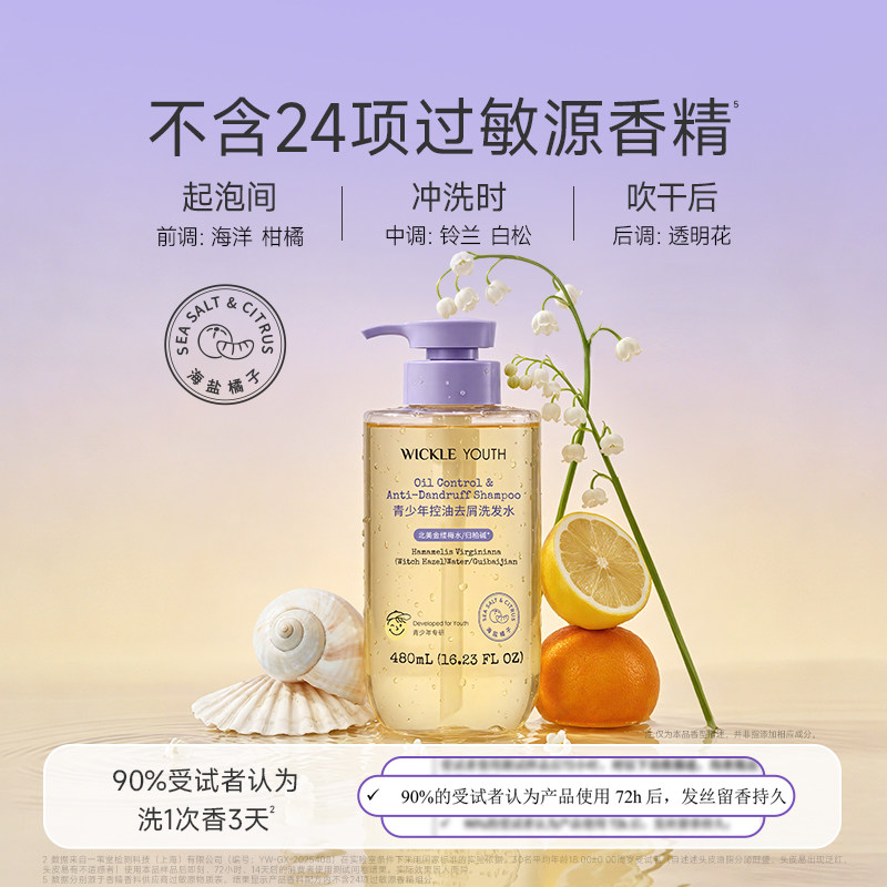 wickle青少年控油舒缓去屑止痒洗发水油敏头皮青春期男女孩专用