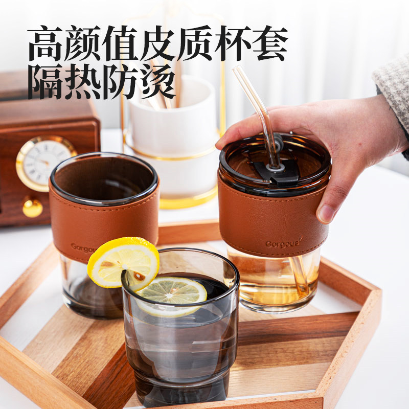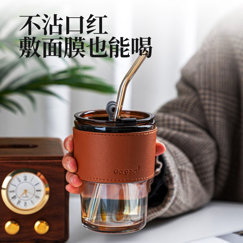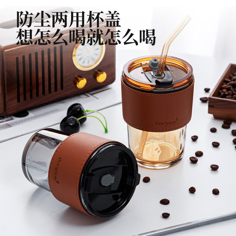 水杯吸管杯女生高颜值杯子办公室便携式玻璃咖啡杯带盖INS随行杯