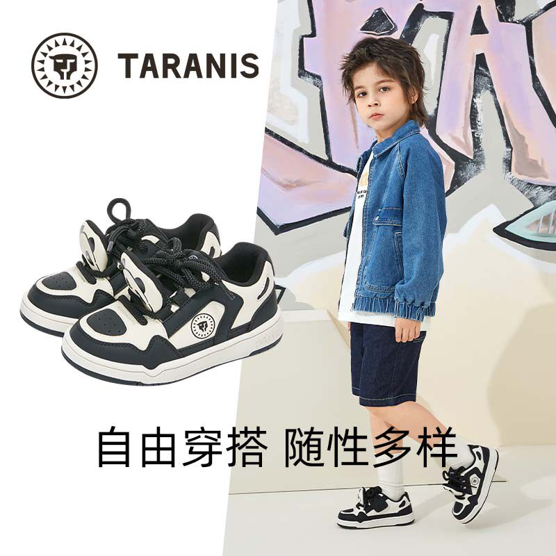 泰兰尼斯童鞋春秋款儿童板鞋男童黑白熊猫鞋加绒保暖女童运动鞋子