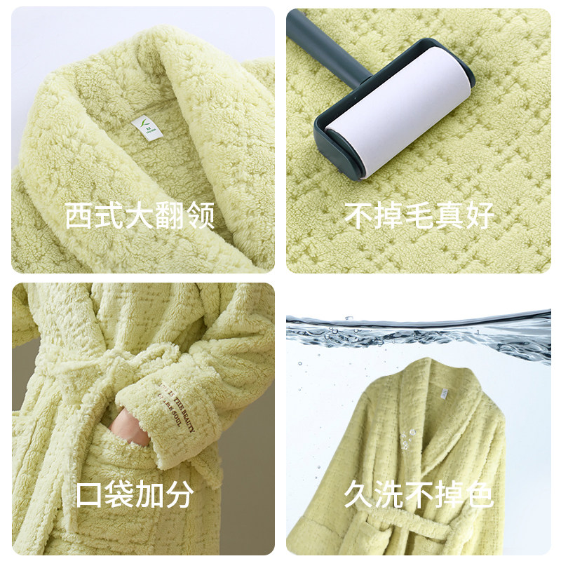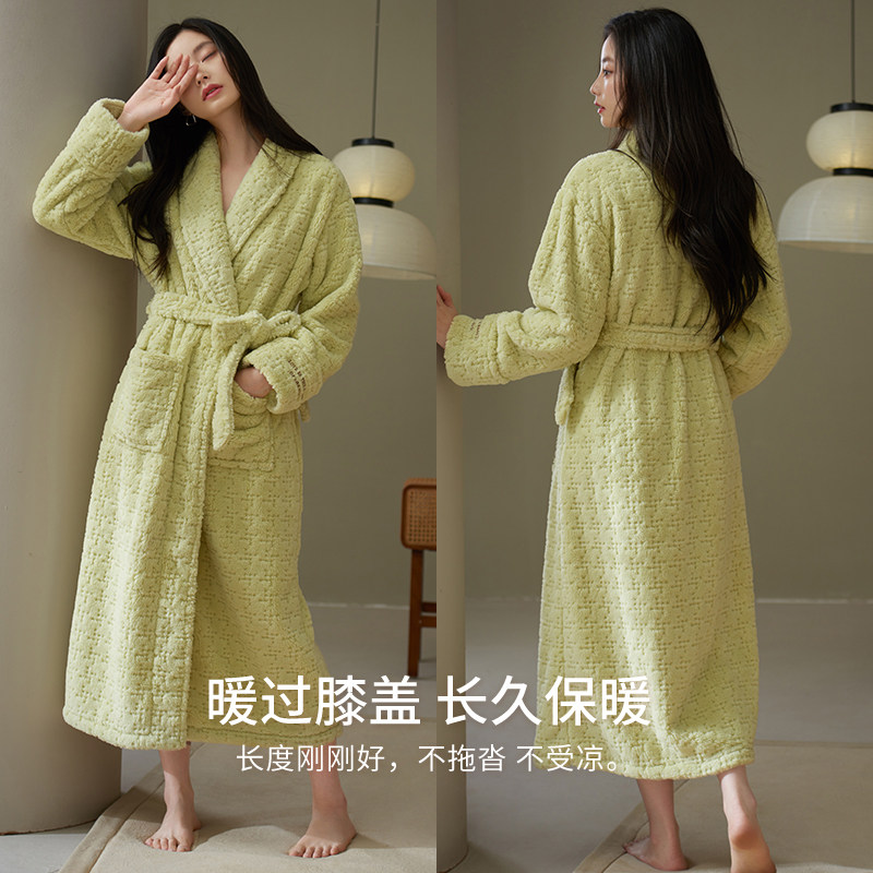 轩靓法兰绒睡袍女士冬季加绒加厚保暖珊瑚绒浴袍冬款可外穿家居服