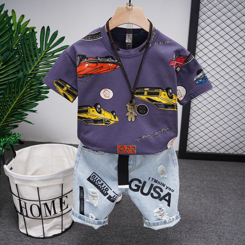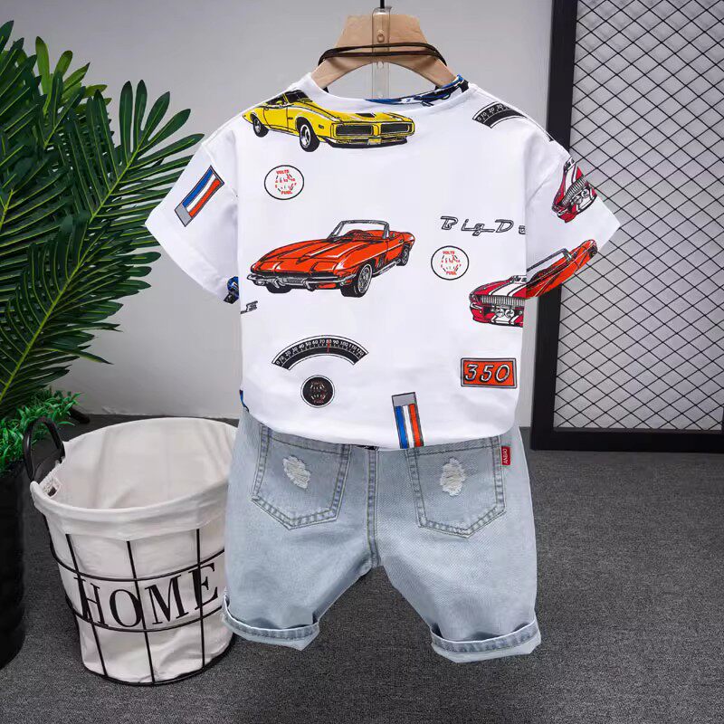 韩版男童纯棉短袖2025夏季新款男宝宝卡通汽车T恤中小童洋气半袖