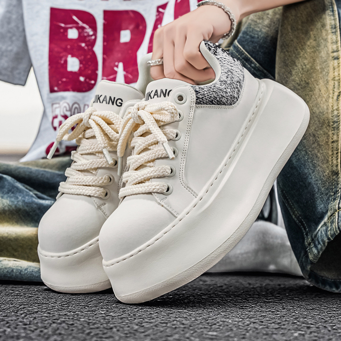 311线报网描述:9CM6内增高潮牌板鞋男生2026新款厚底休闲鞋