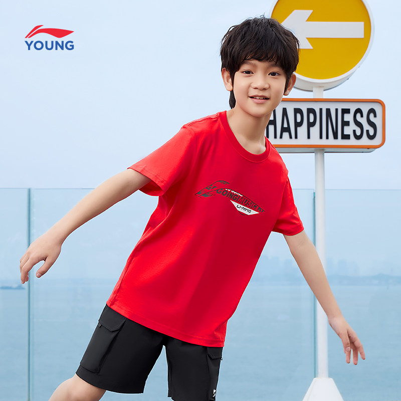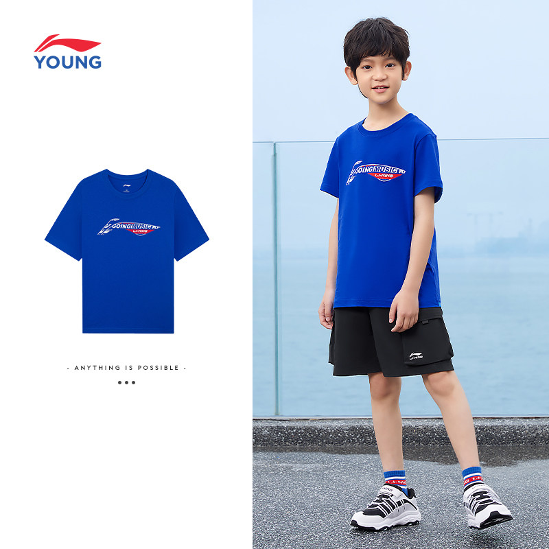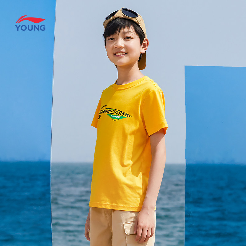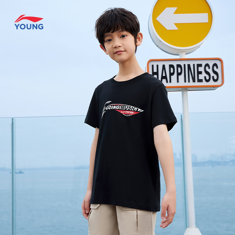 李宁童装纯棉短袖T恤男童小童大童体恤夏季短款上衣白色休闲夏装