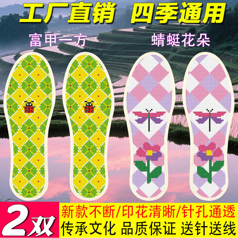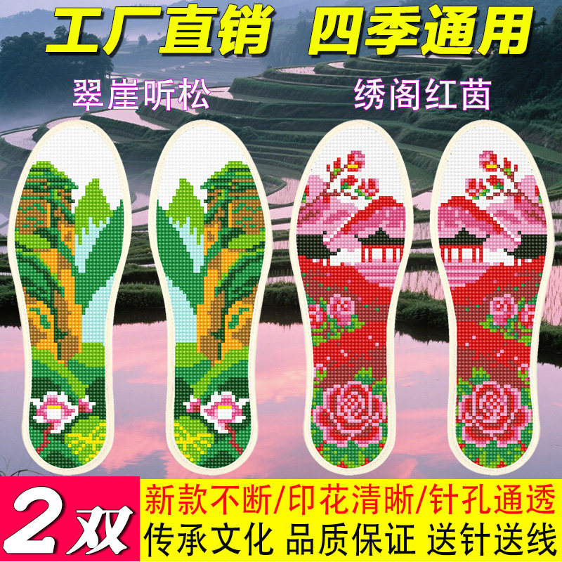 2026年新款十字绣鞋垫半成品男女自己绣印花纯棉布带针线手工刺绣