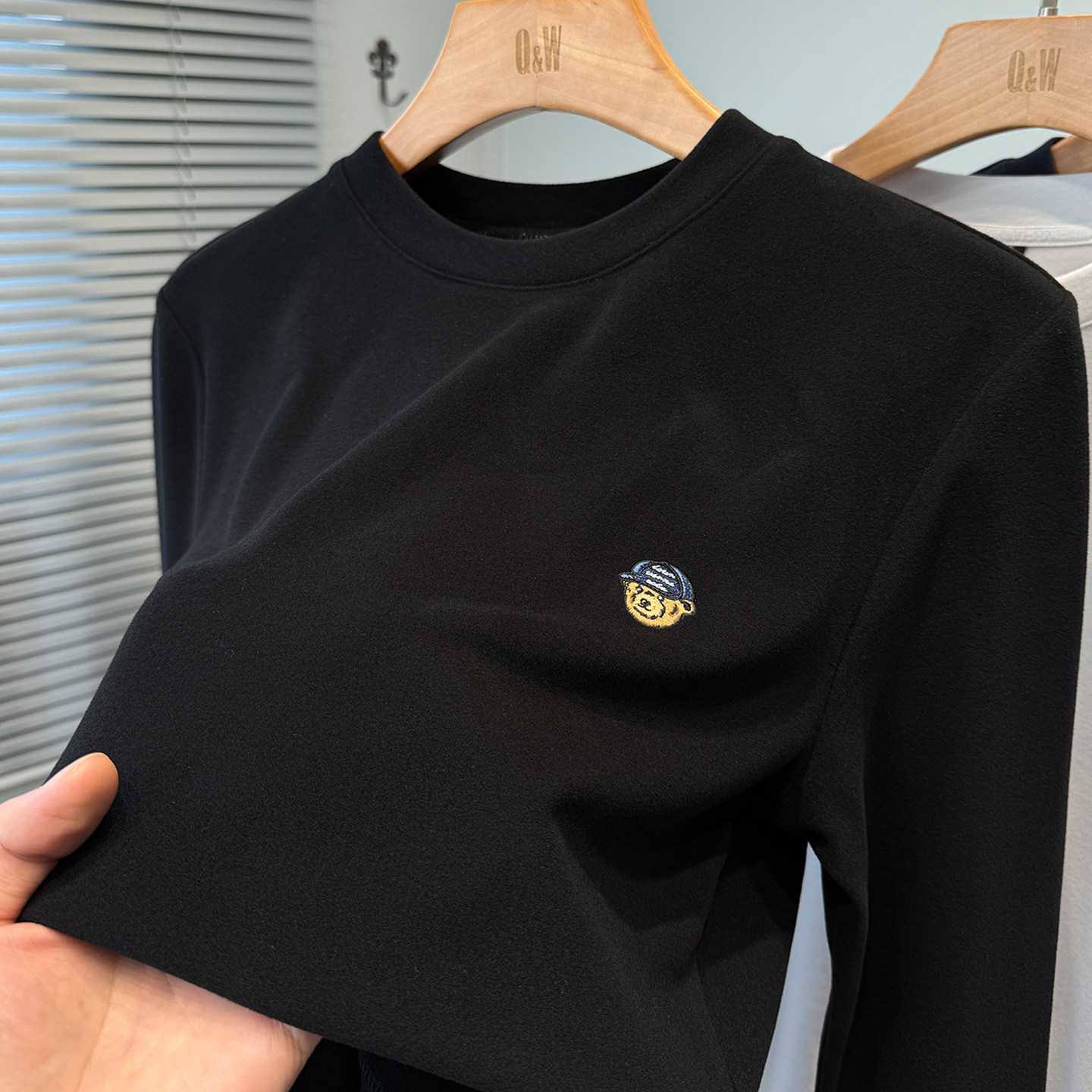 小熊刺绣磨毛德绒打底衫男款长袖冬季青年休闲t恤男圆领修身内搭