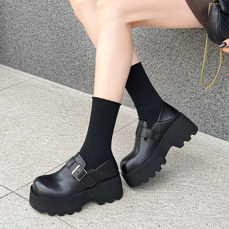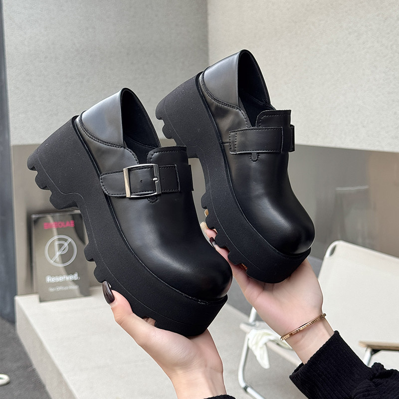 甜酷厚底勃肯鞋女2025春秋新款英伦风小皮鞋增高不累脚黑色JK单鞋