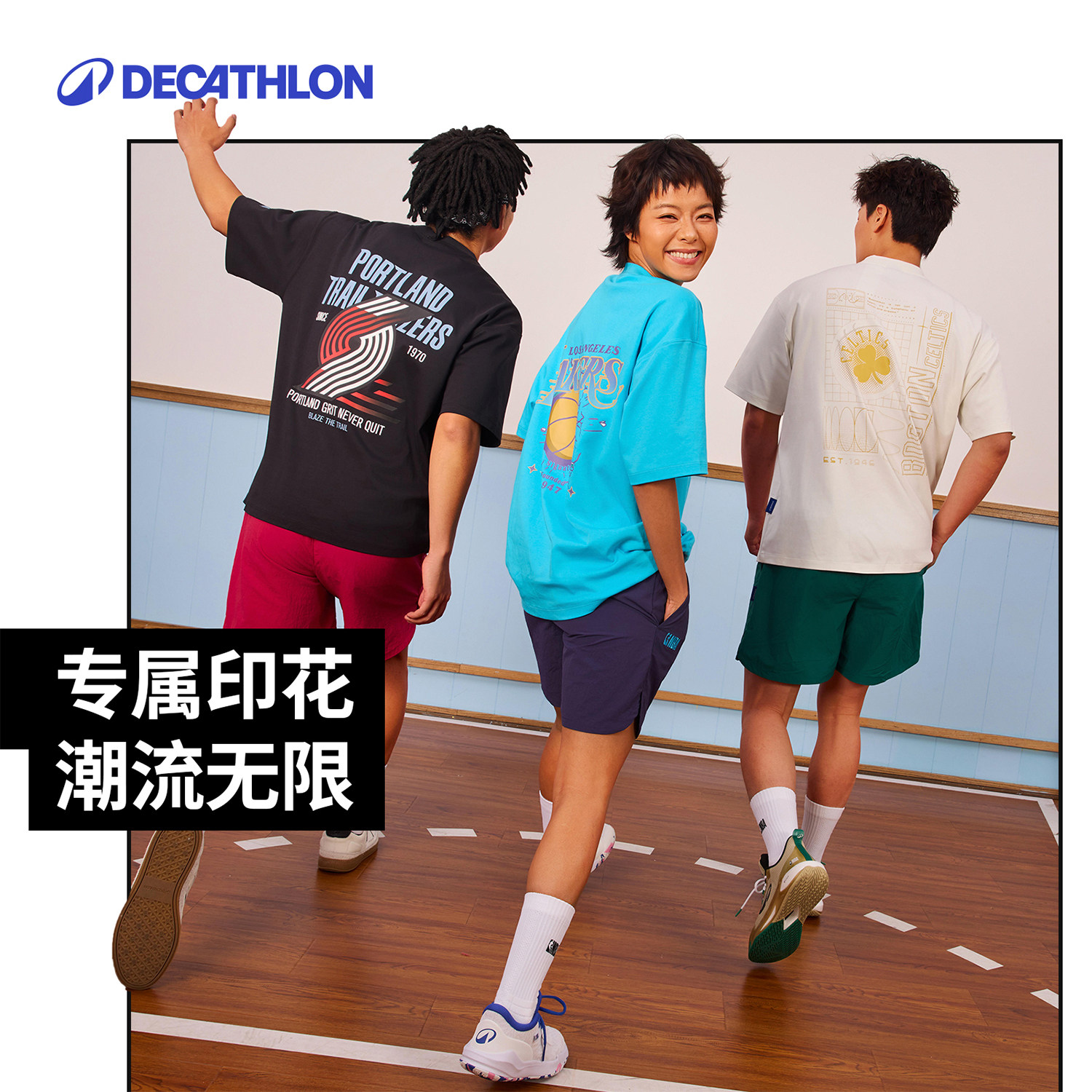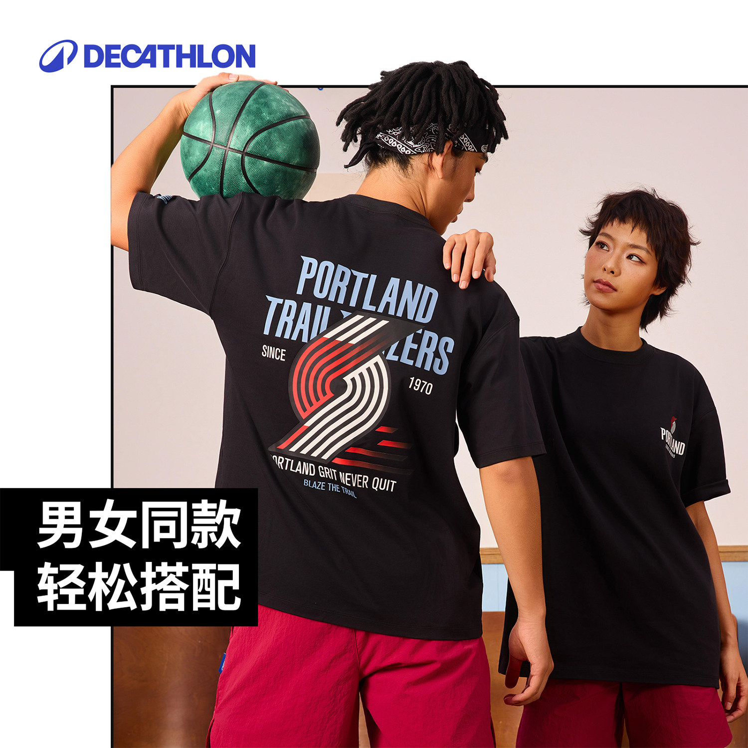 迪卡侬SPW377149 NBA联名运动T恤潮流印花宽松男女短袖上衣SAT3