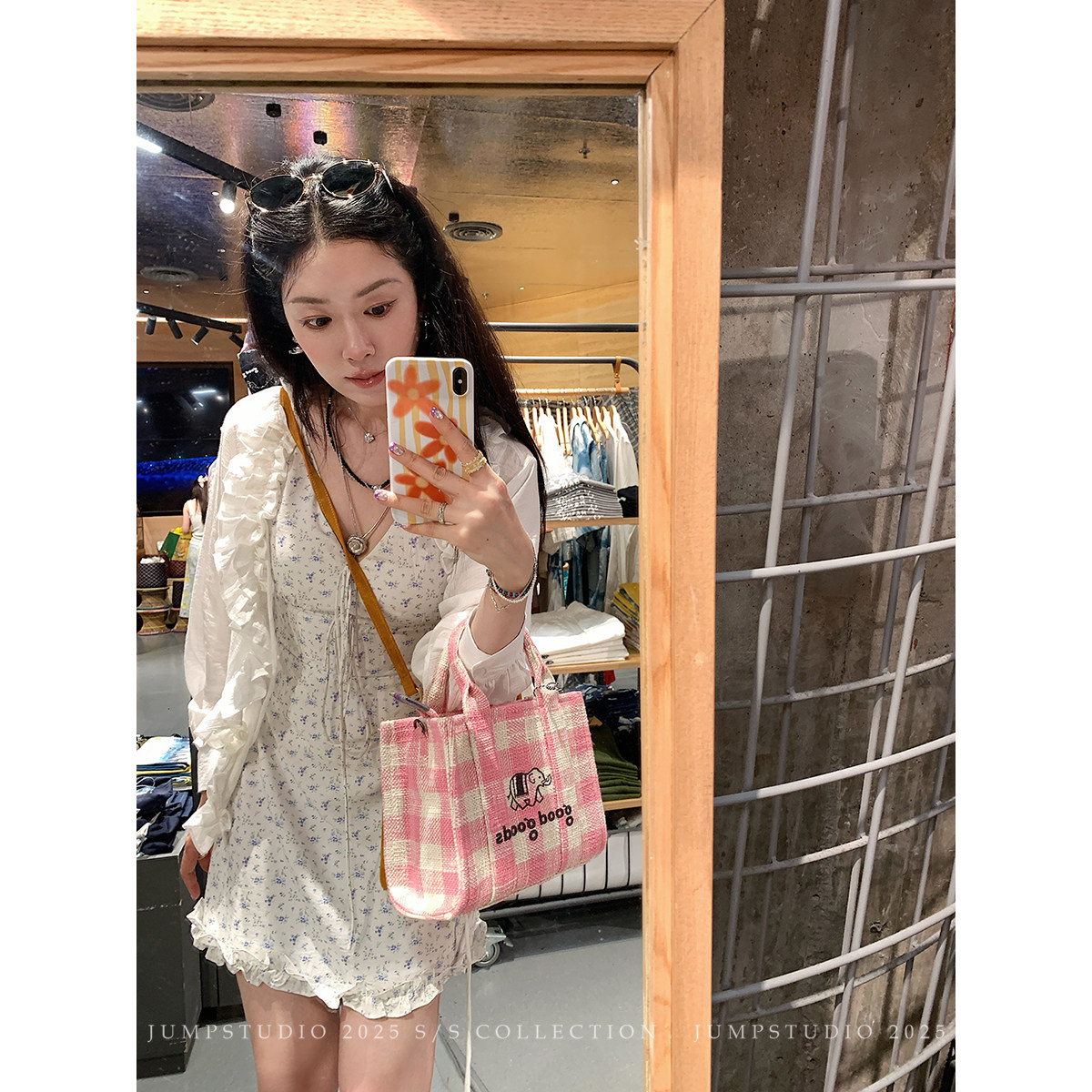草莓跳 法式浪漫碎花系带v领无袖连衣裙女夏季小清新显瘦短款裙子