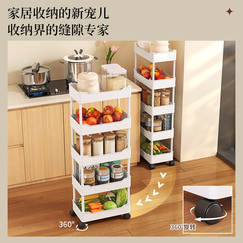 厨房夹缝置物架落地冰箱侧面窄缝可移动小推车调料果蔬缝隙收纳架