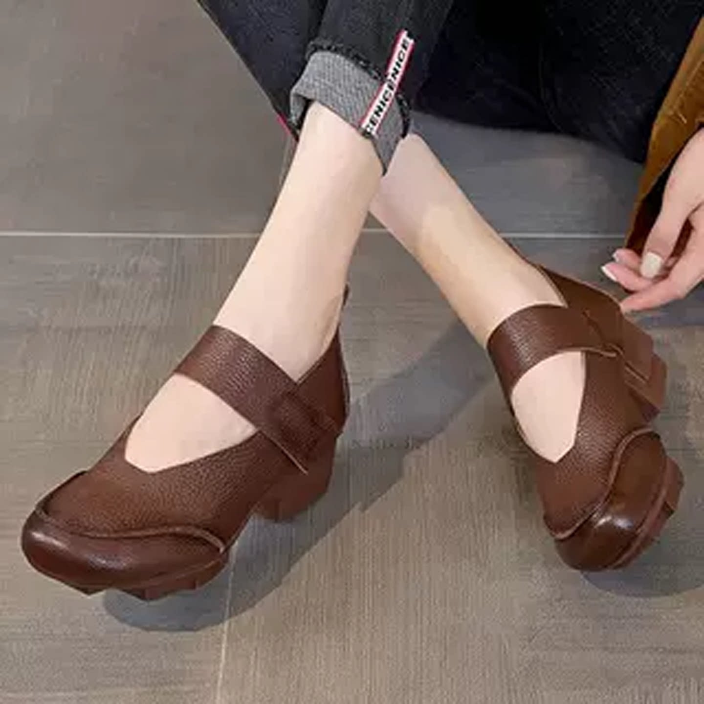 软底复古真皮女鞋2026春款民族风法式粗跟圆头浅口女单鞋