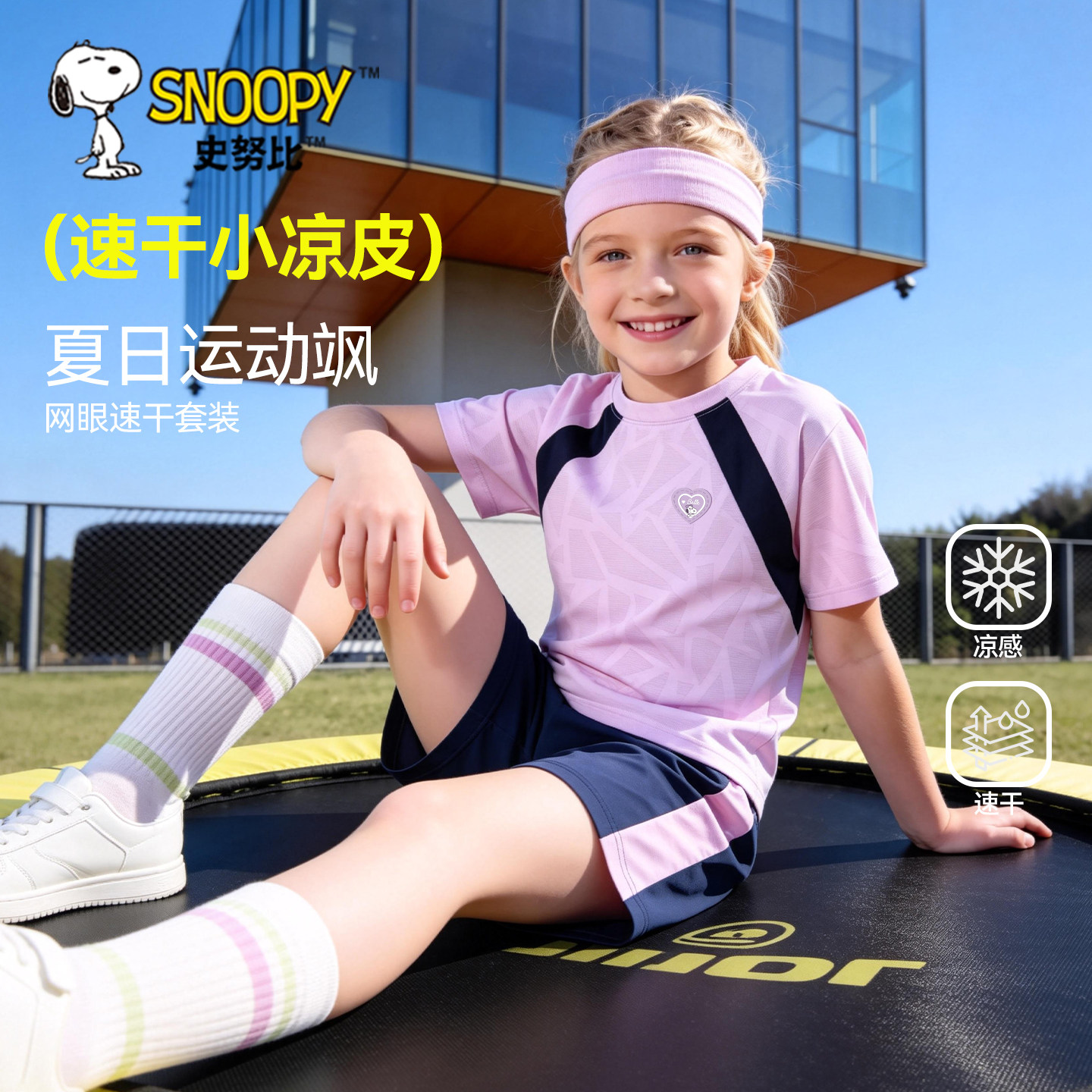 史努比童装女童运动套装夏季薄款冰丝速干衣凉感短袖儿童两件套女