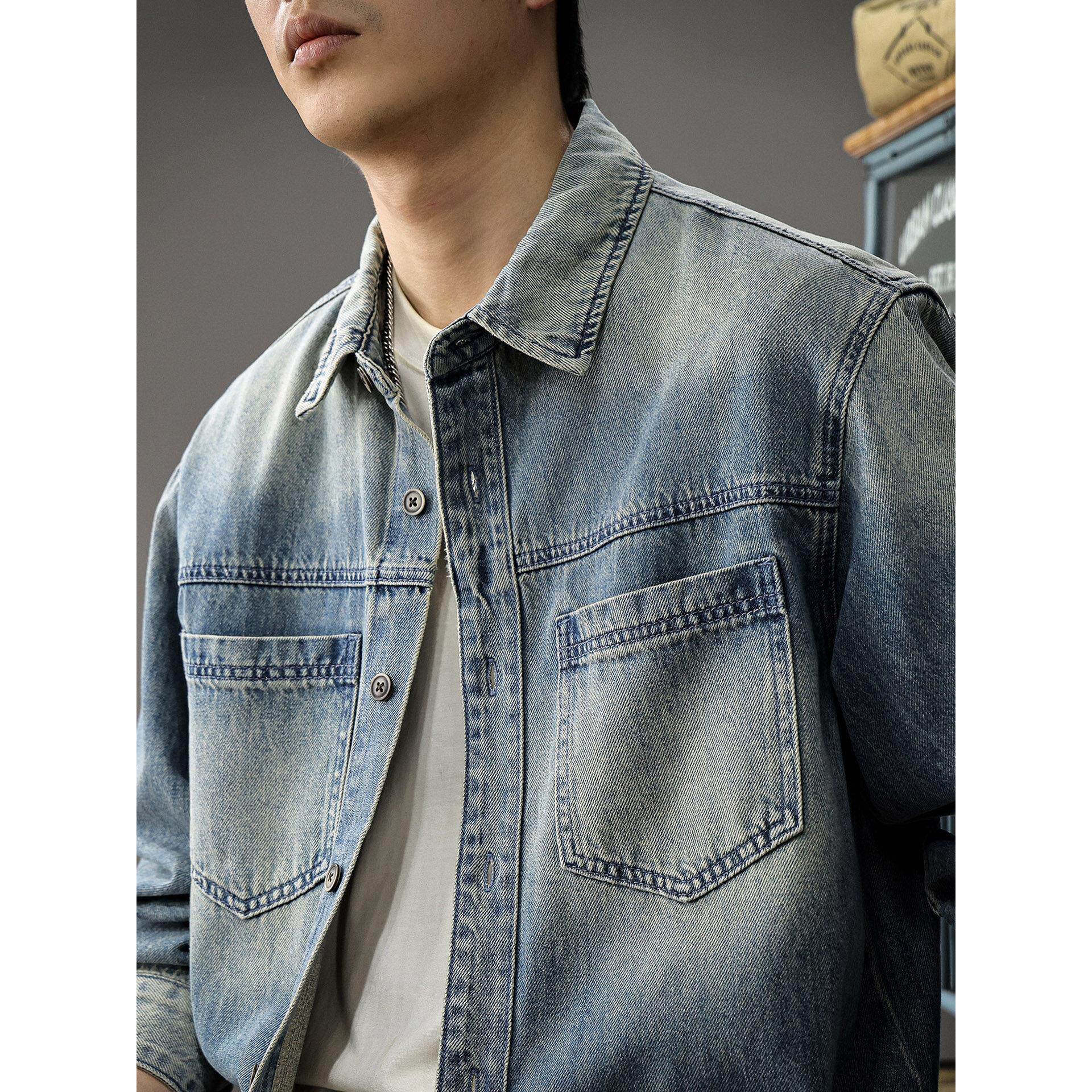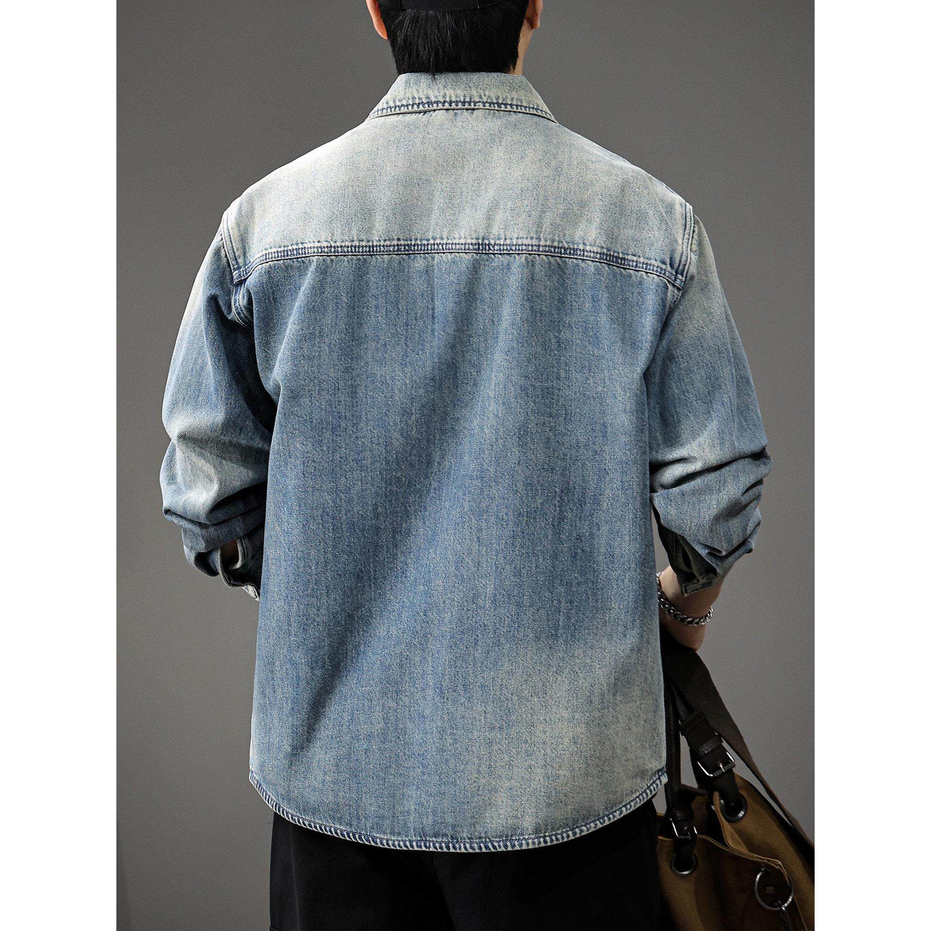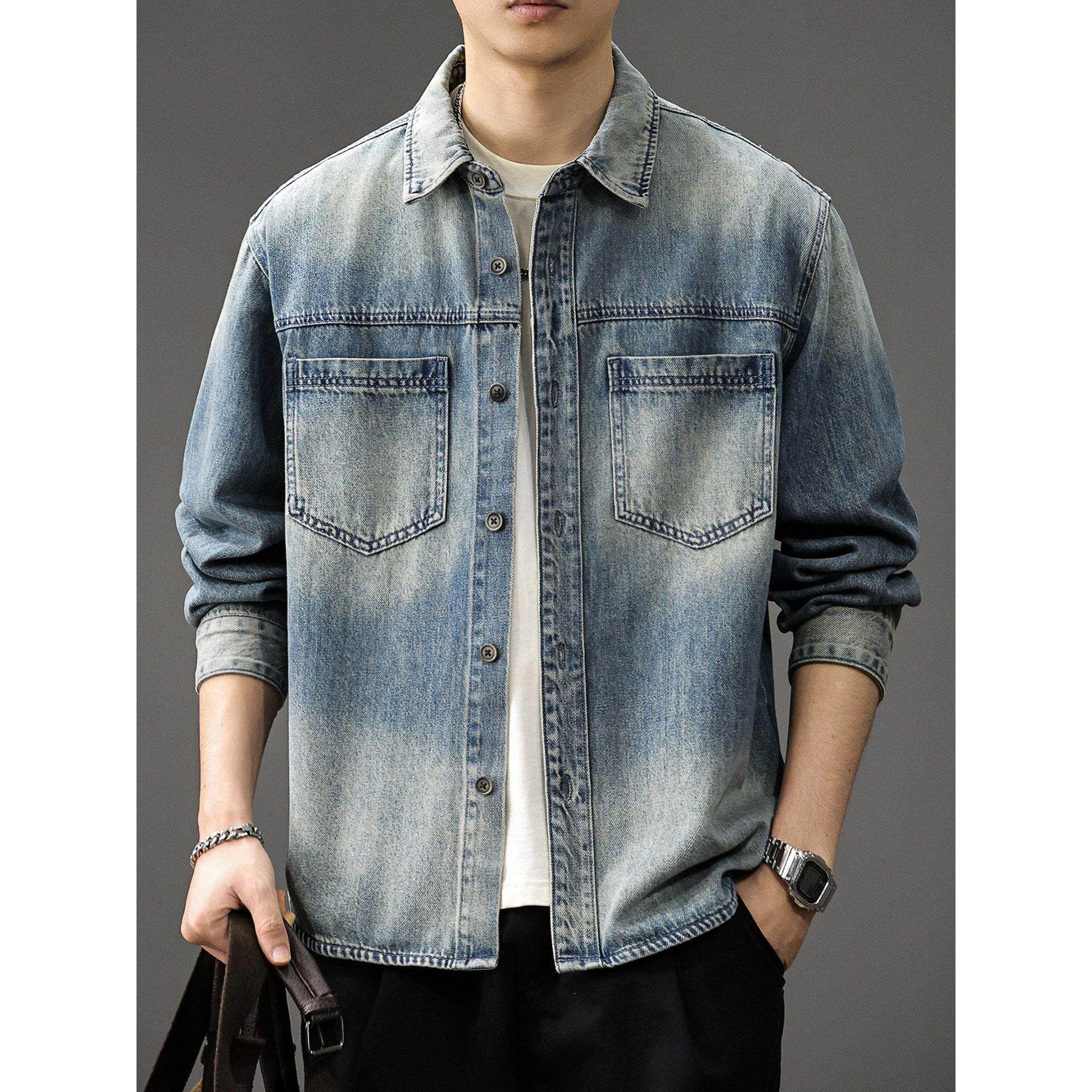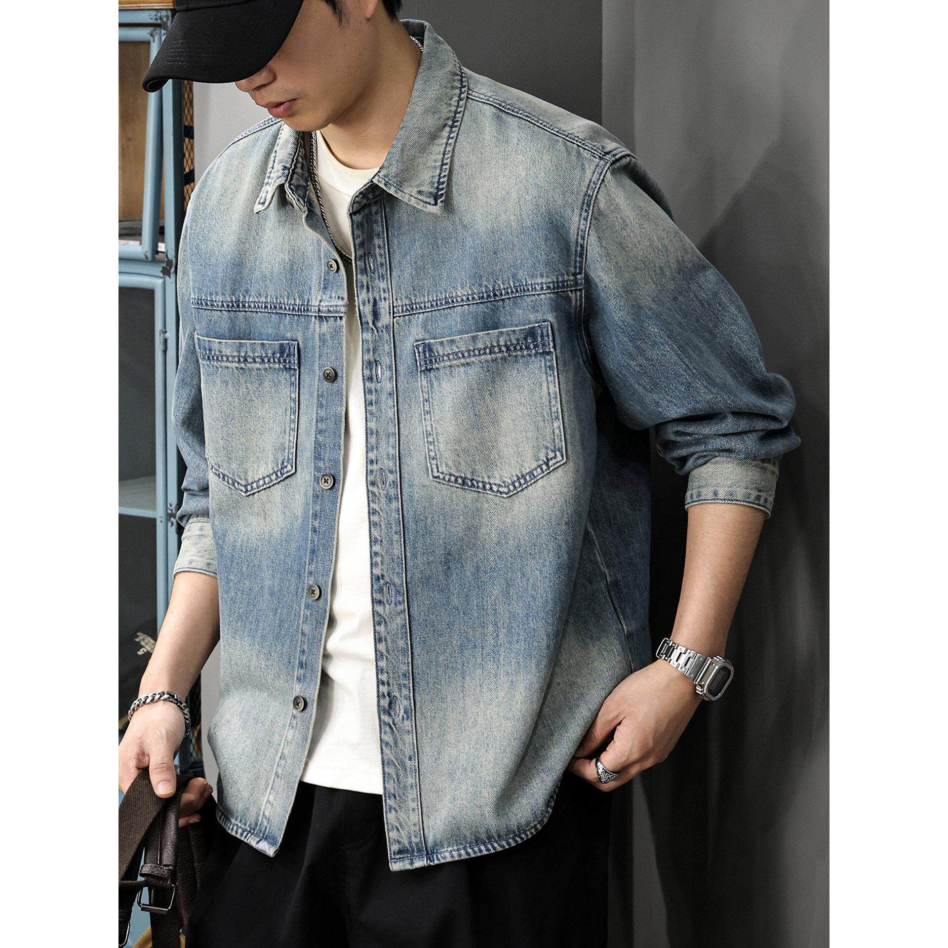 春季新款高级感复古水洗牛仔衬衫男2026渐变磨白长袖工装外套男款