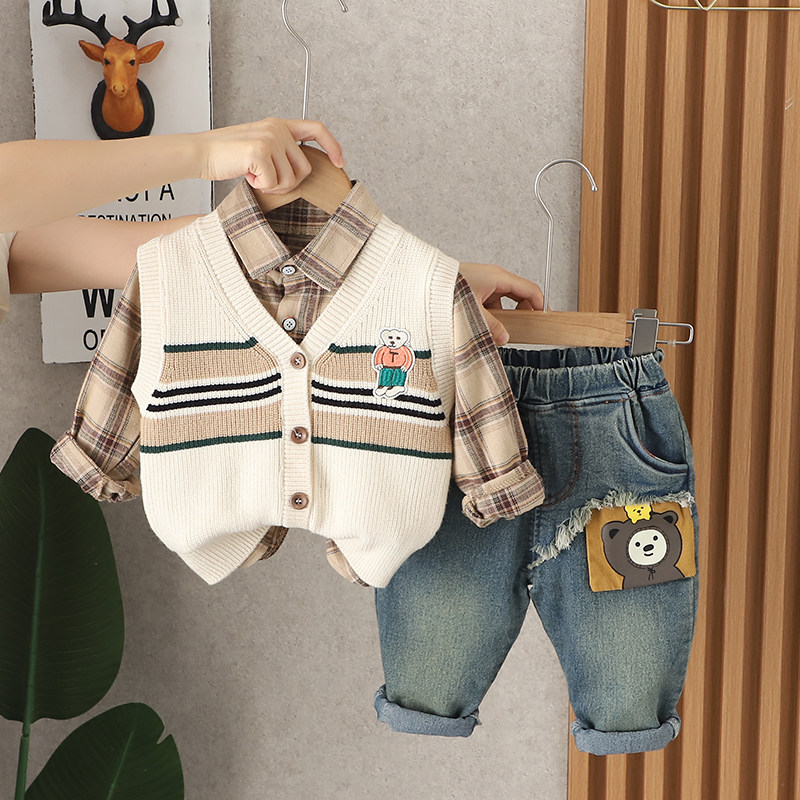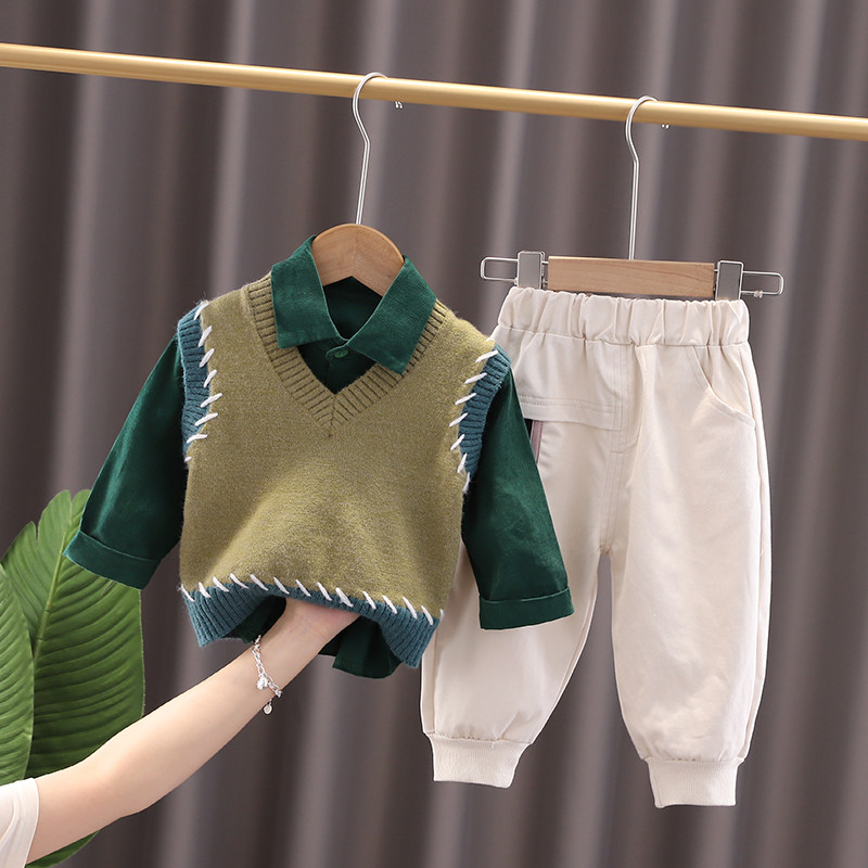 断码捡漏~儿童春秋童装休闲套装男童女童洋气马甲衬衫长裤三件套