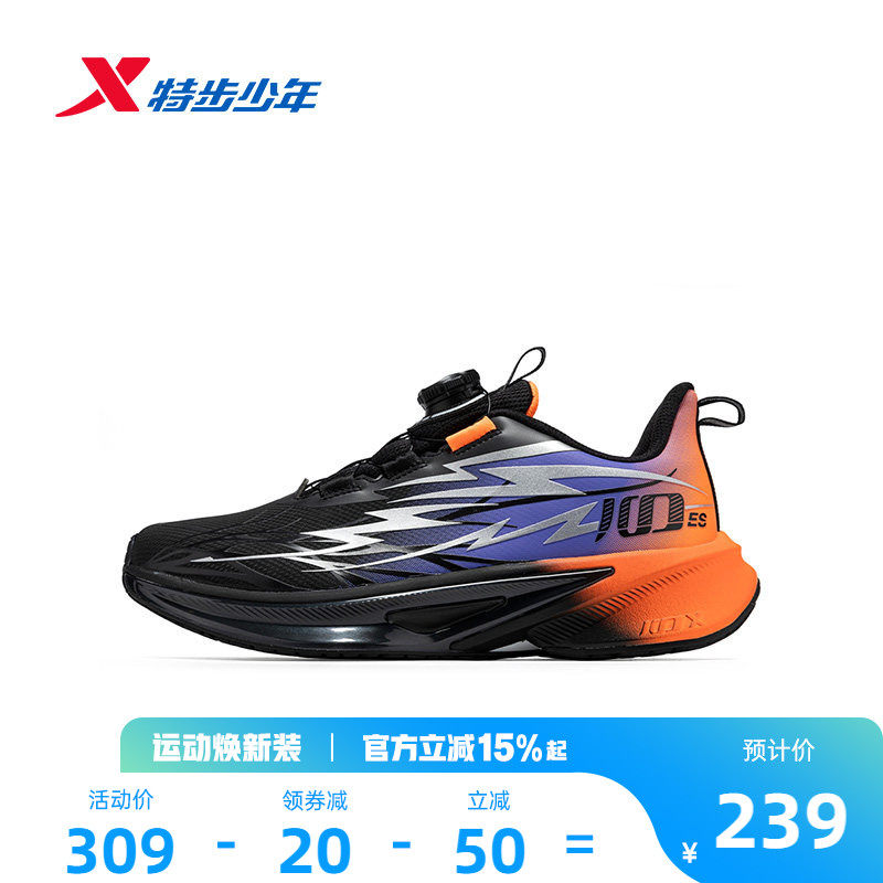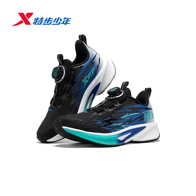 100ES|特步童鞋男童跑步鞋春秋季款中大童学生耐磨旋钮扣运动鞋