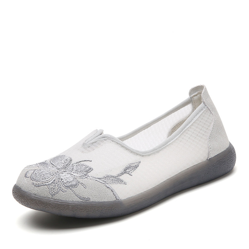 妈妈绣花鞋2026夏季新款网面透气网鞋女一脚蹬软底不累脚国风女鞋