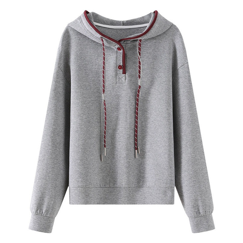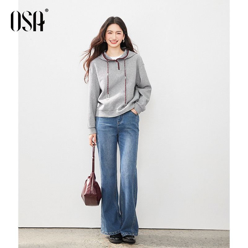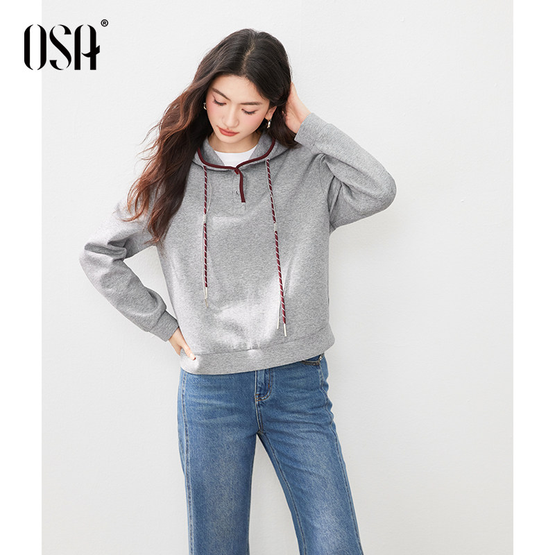 OSA欧莎灰色连帽卫衣女款2026新款春装宽松慵懒风套头设计感上衣