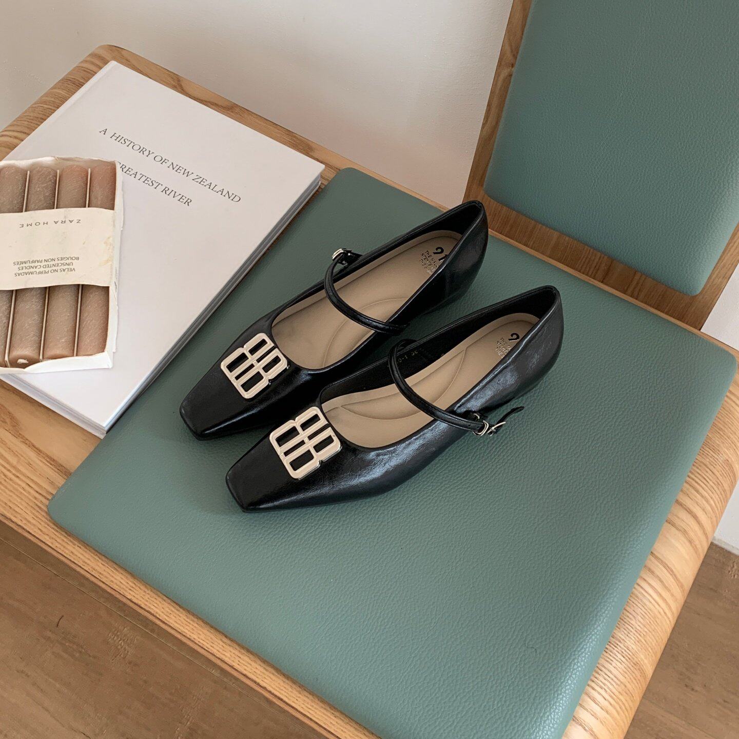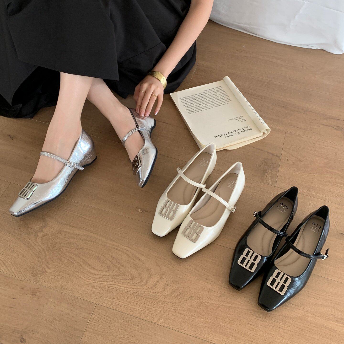 HAN XI 法式优雅风金属方扣玛丽珍鞋女2026新款内增高浅口奶奶鞋