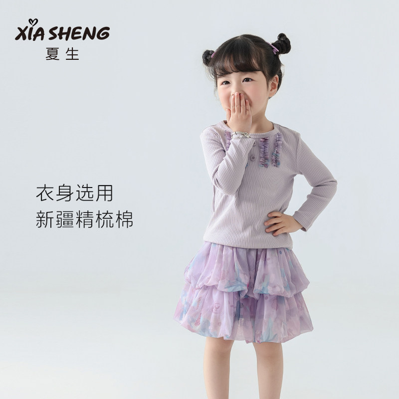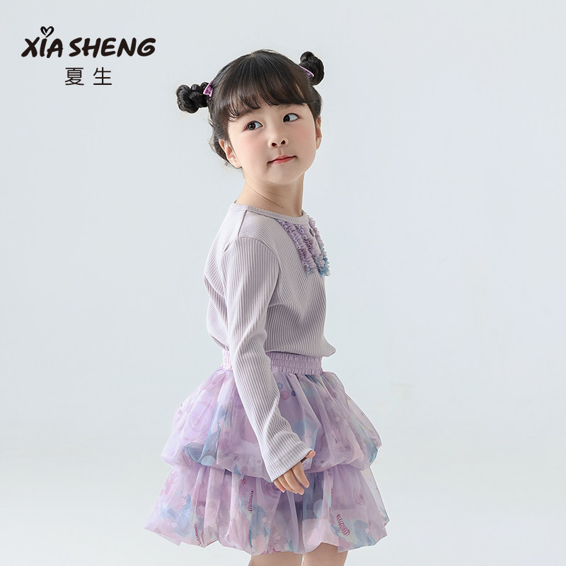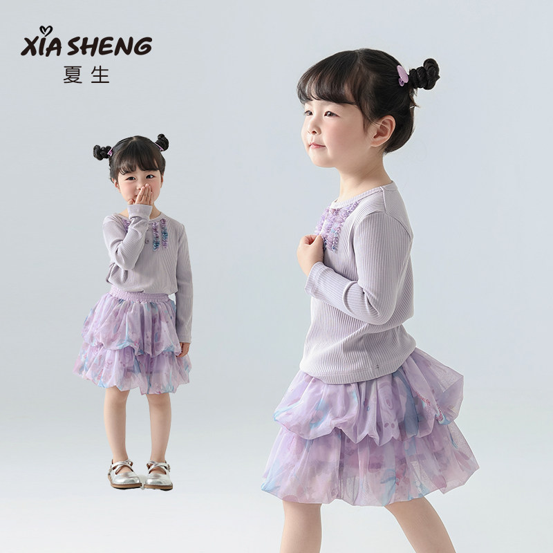 夏生原创紫漾花趣套装 女孩甜美网纱半身裙子百搭T恤女童春装新品