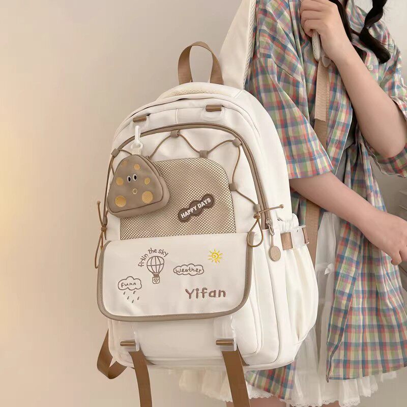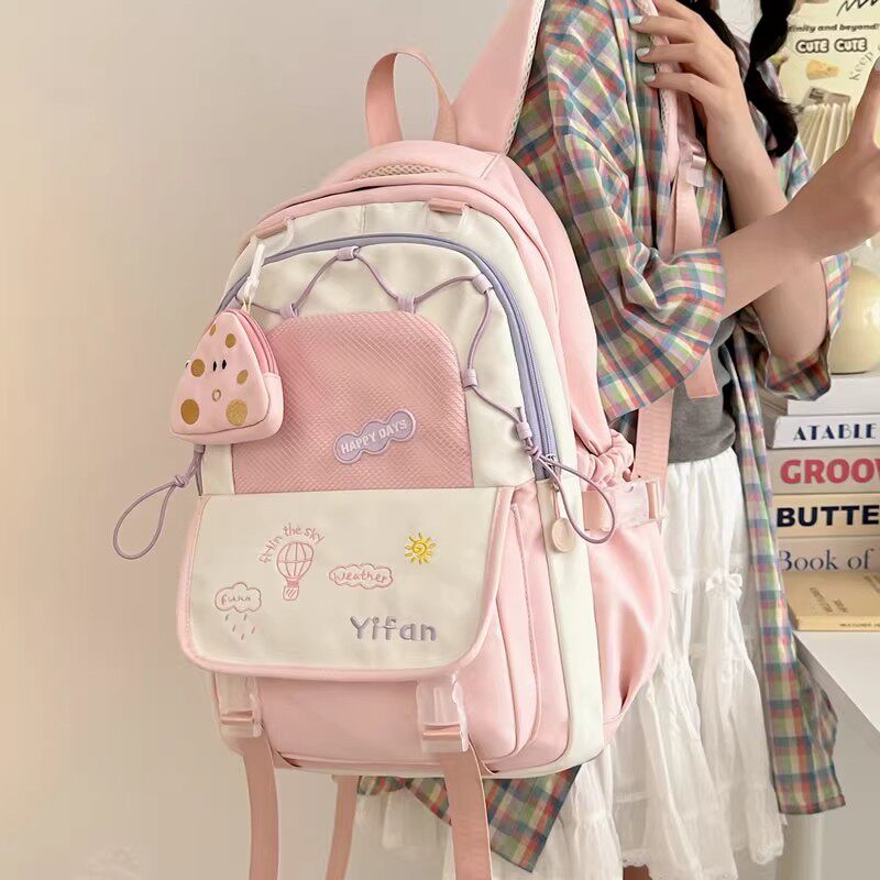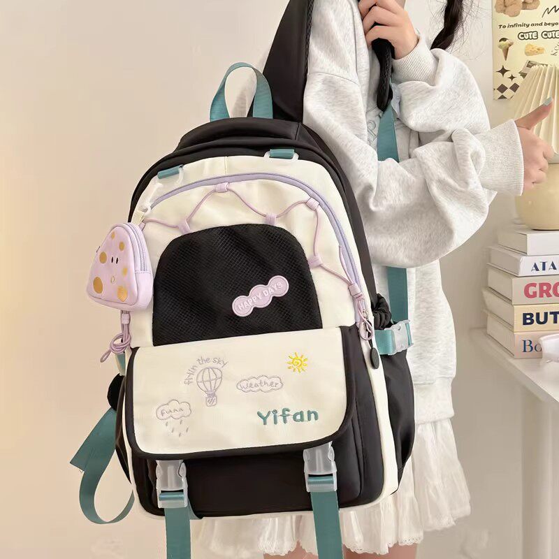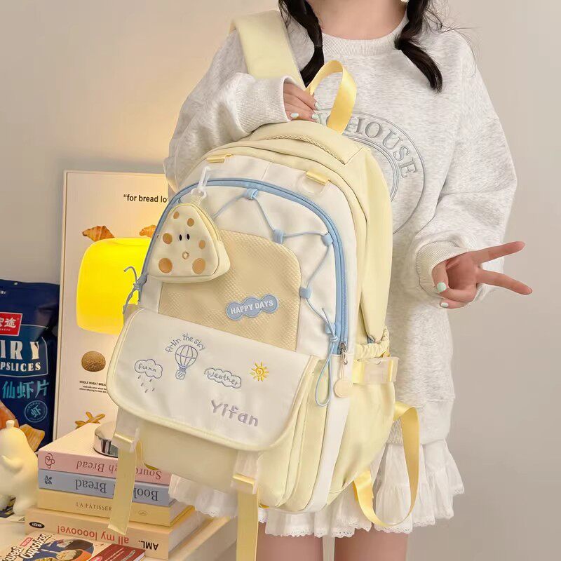 初中生女士书包女生蓝色系高颜值小众ins风双肩包大容量结实耐用w