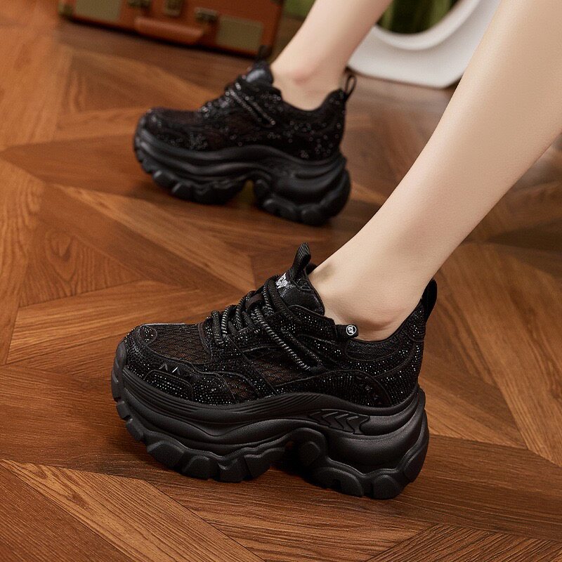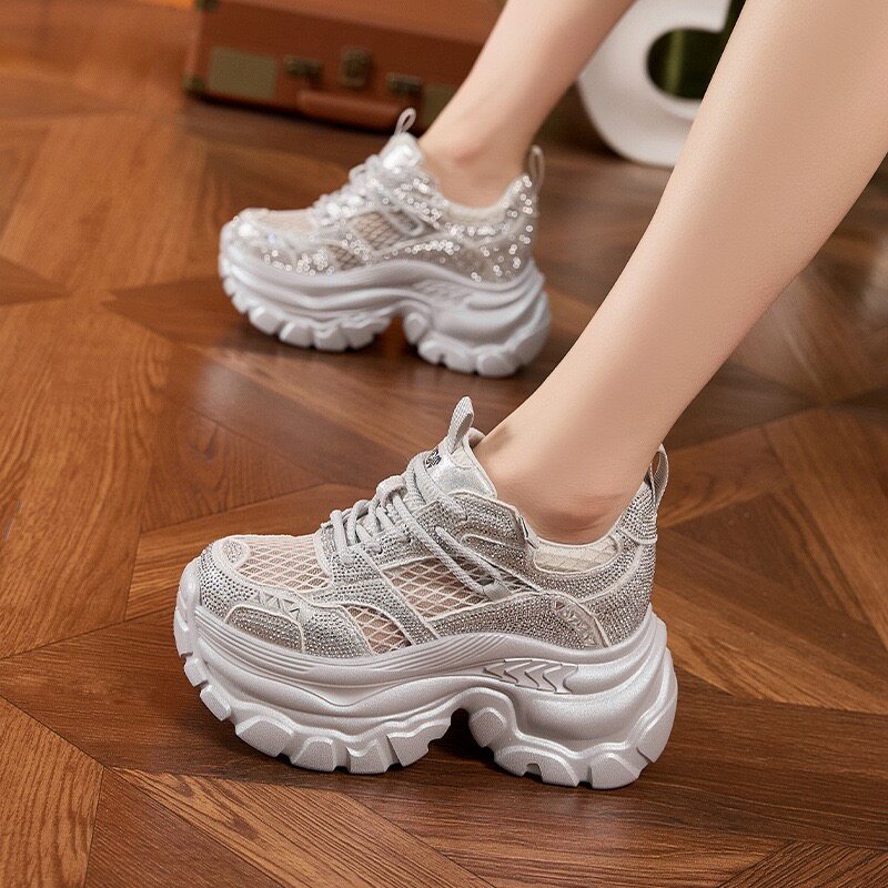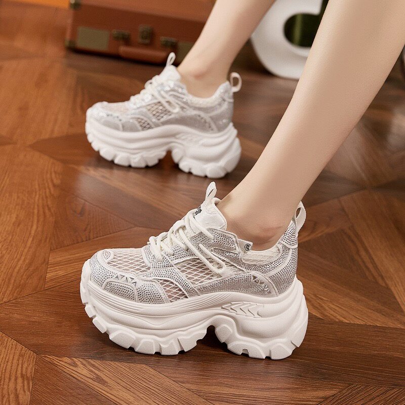 超好看内增高老爹鞋女款2026夏天新款流行水钻休闲小个子透气网鞋
