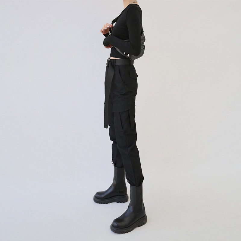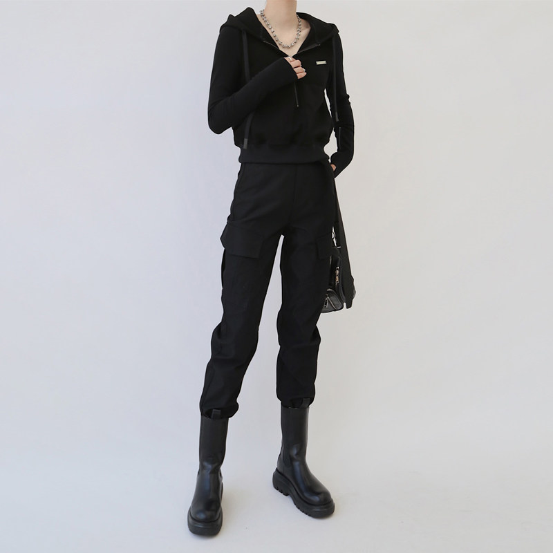 高腰小个子黑色裤子机能春秋冬工装裤女款2026新款束脚嘻哈潮ins