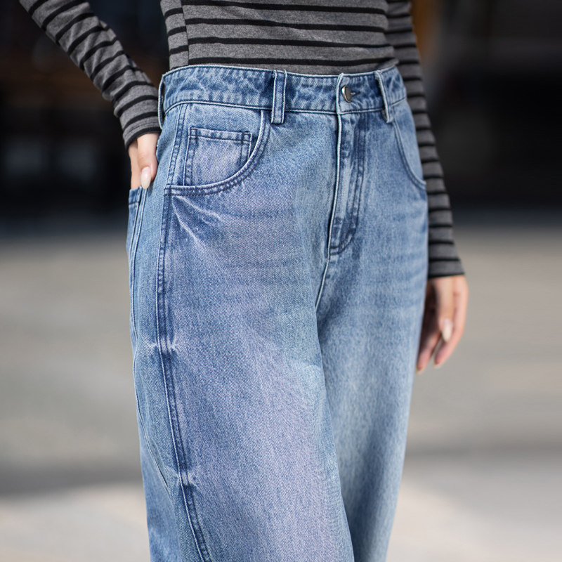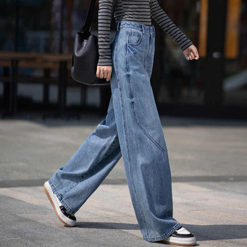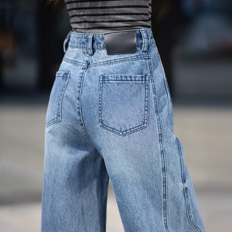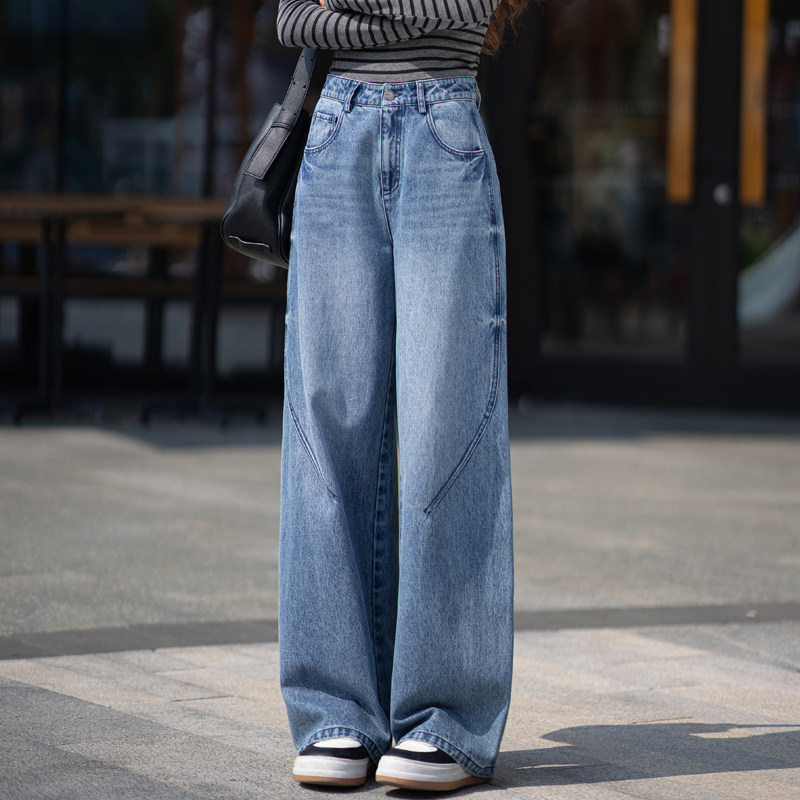 普鲁士蓝色牛仔裤女款爆款2026新款春秋直筒裤子高腰女裤阔腿长裤