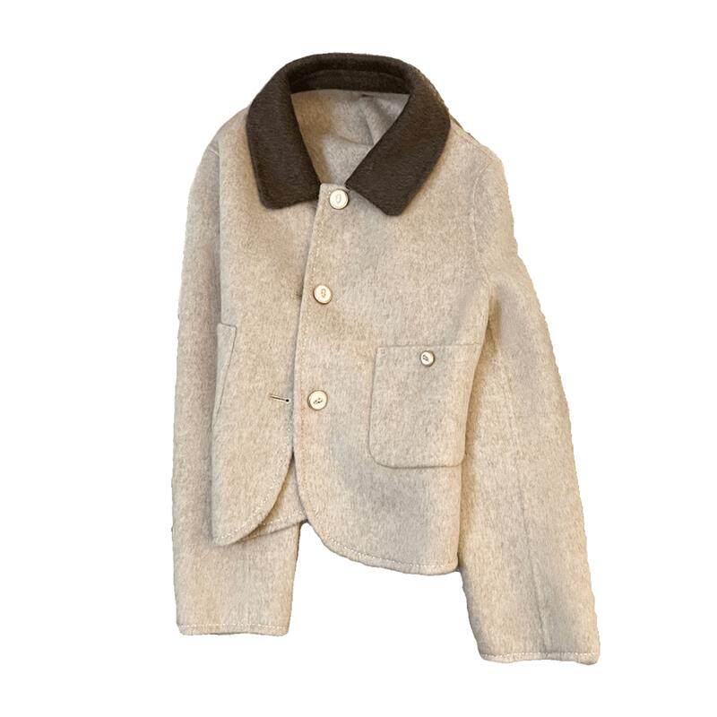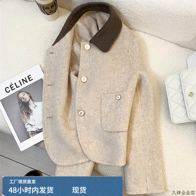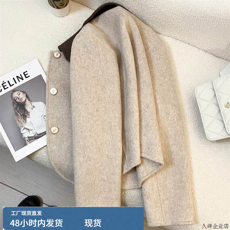 80%韩系米色双面羊绒大衣女短款2024秋冬新款小个子气质毛呢外套
