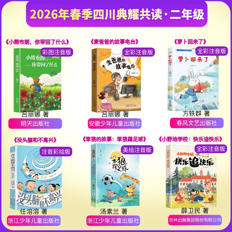 2026年春季四川典耀共读二年级必读阅读书目小熊布朗你带回了什么麦爸爸的故事电台萝卜回来了没头脑和不高兴笨狼踢足球快乐追快乐