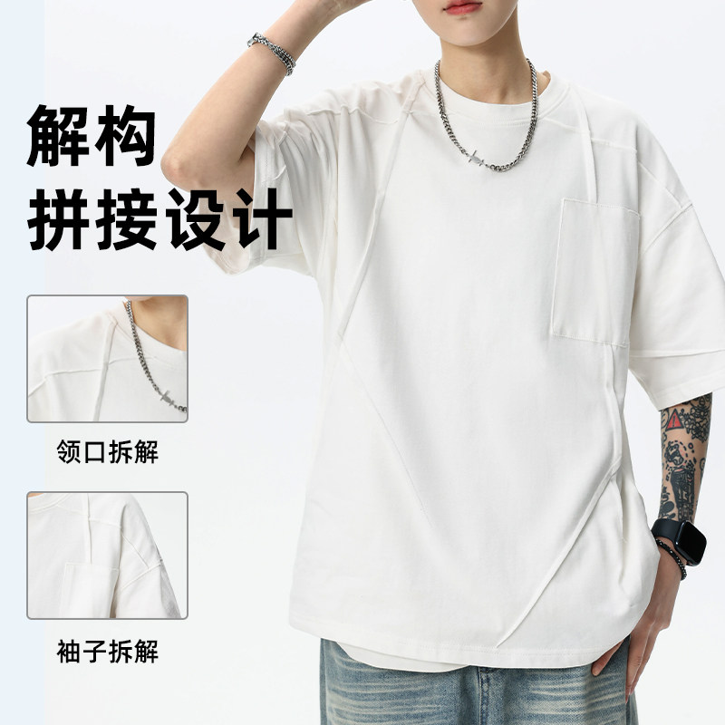纯棉短袖t恤男2026新款白色夏季青少年潮流胖子加肥加大大码男装