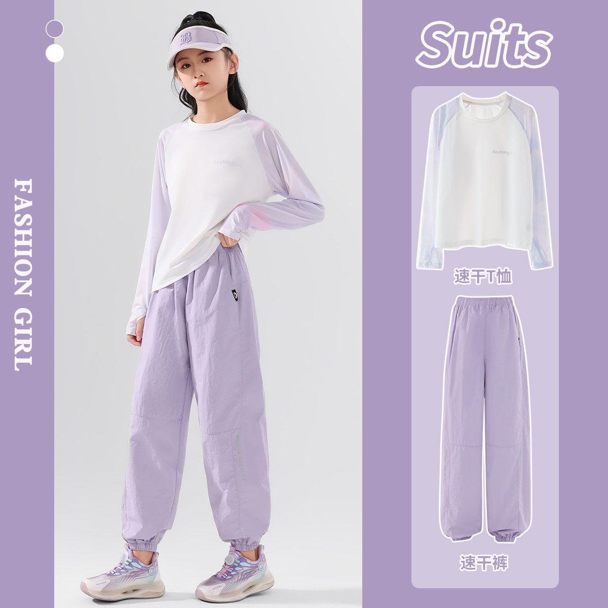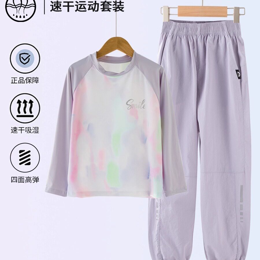 女童速干套装儿童春秋薄款跑步训练服2026新款女孩秋季运动休闲裤