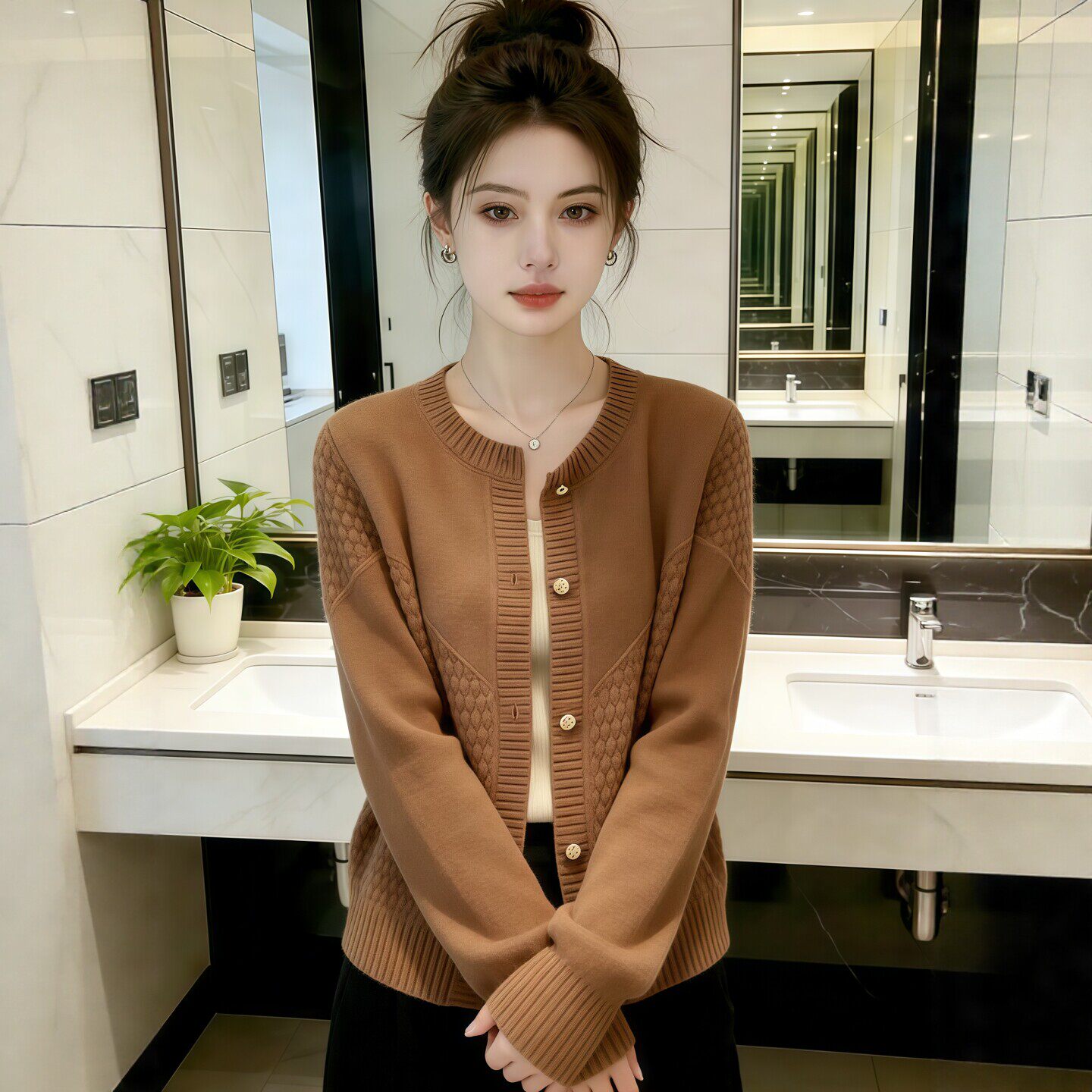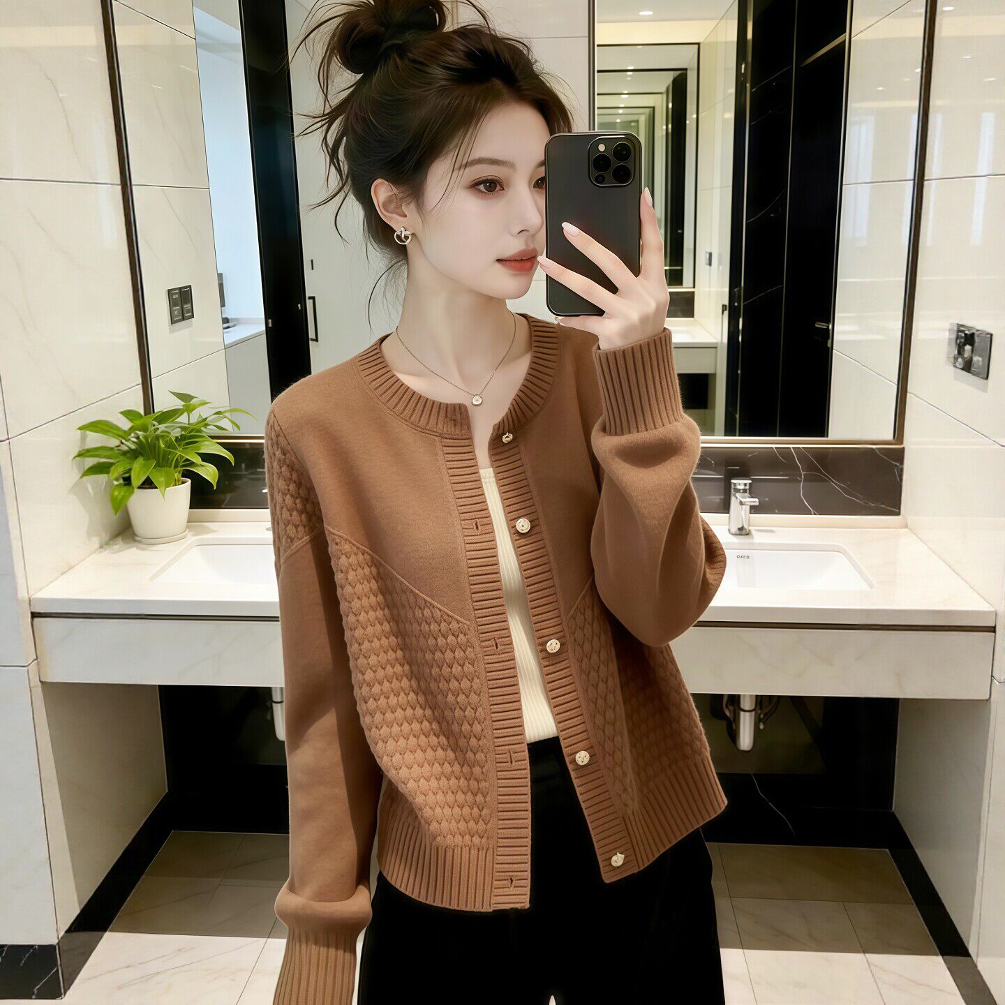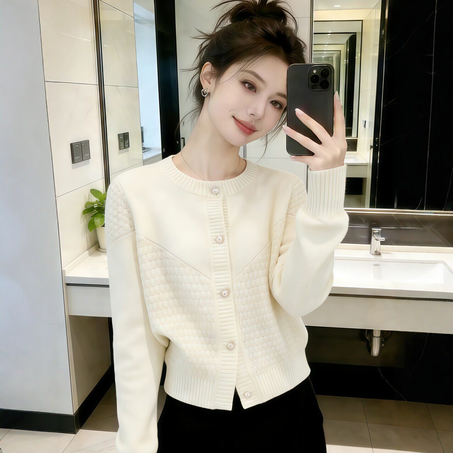 独特漂亮白色针织衫毛衣开衫外套春装女款2026年新款爆款短款上衣