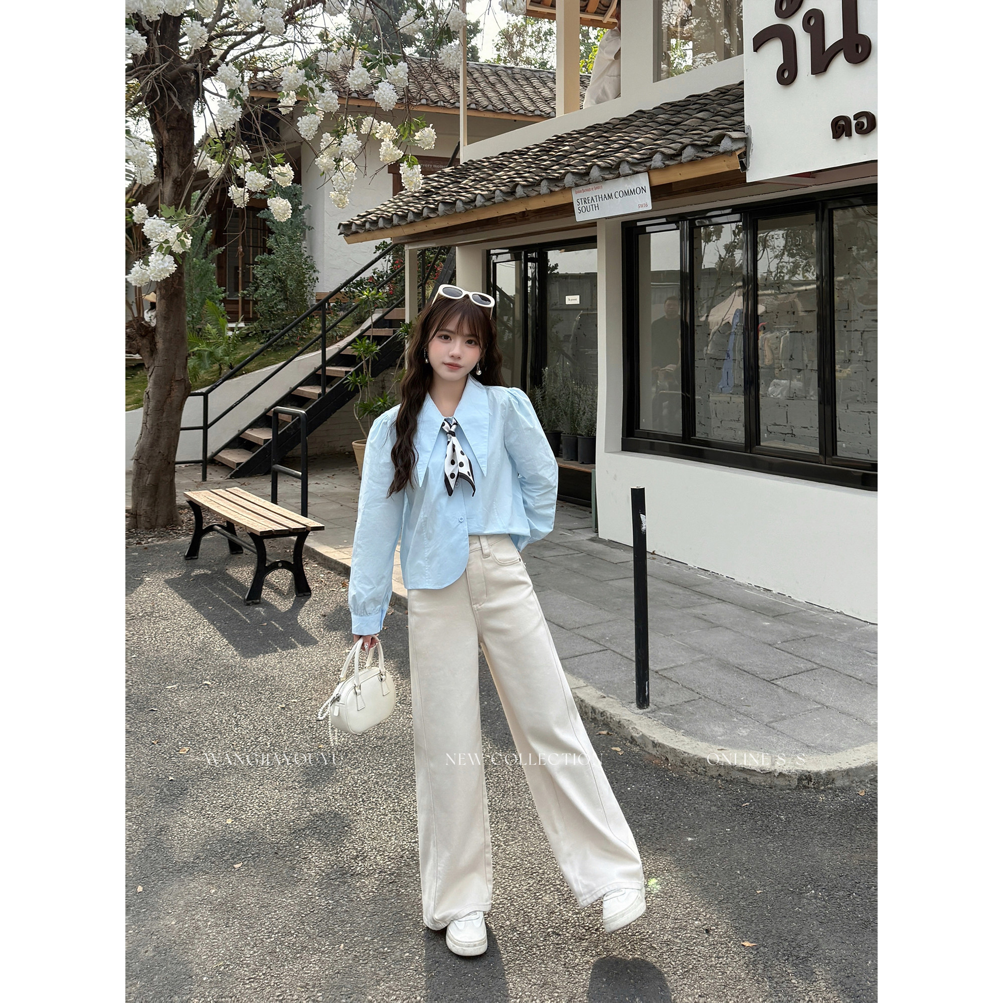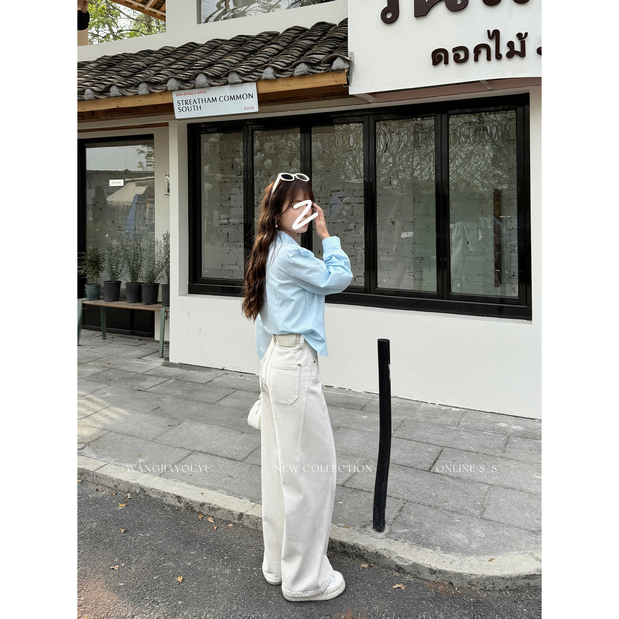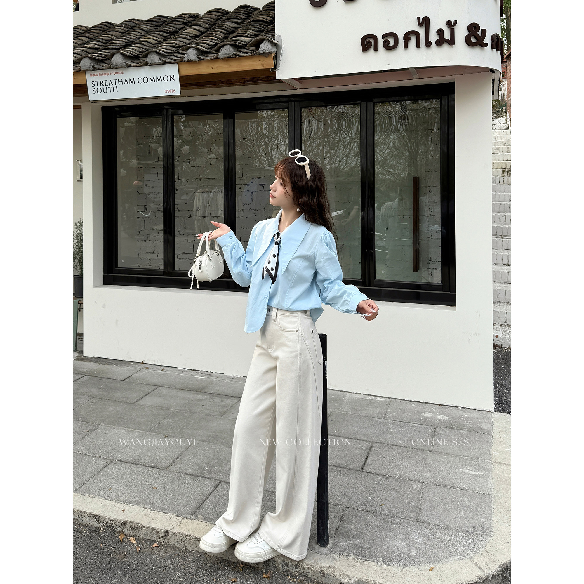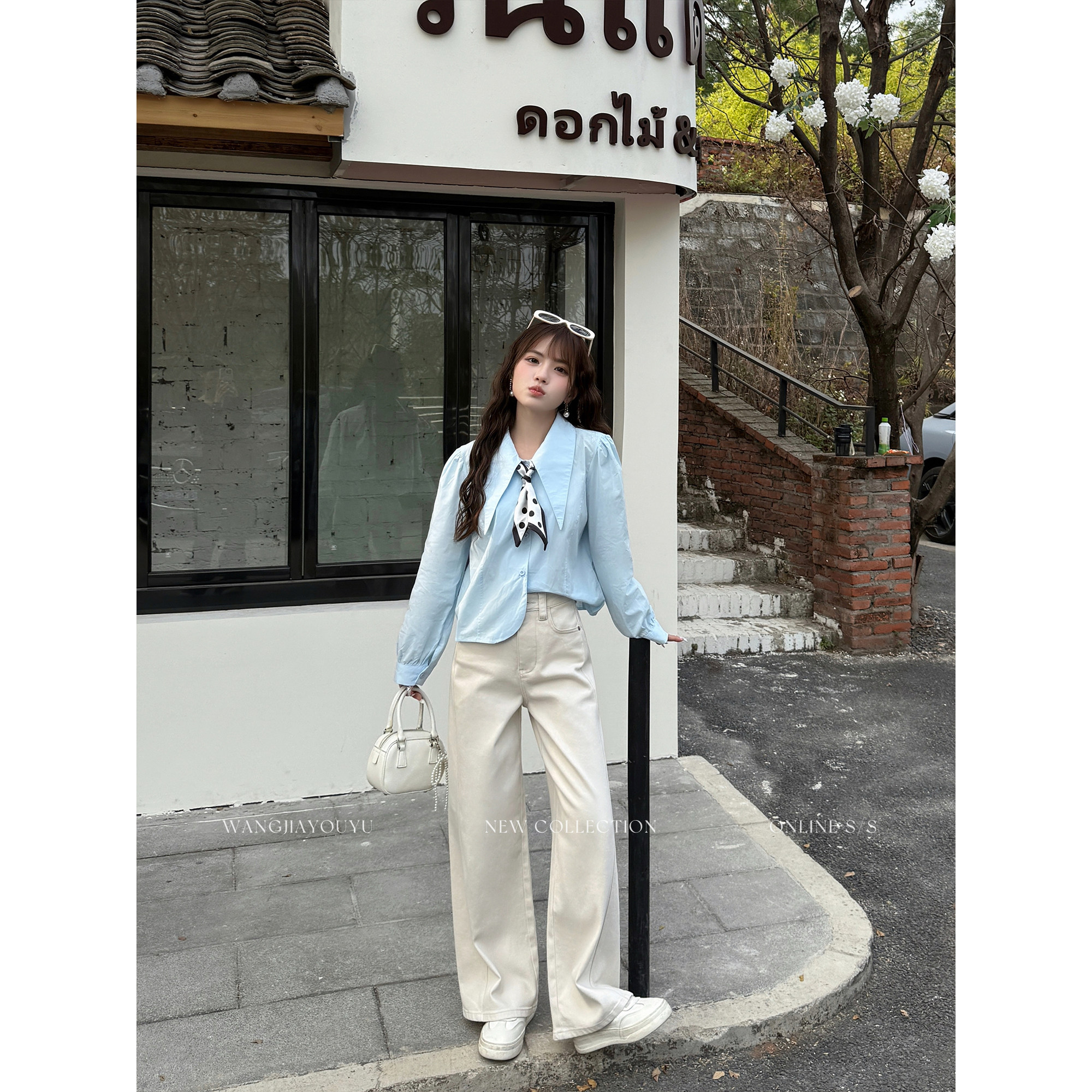 王家有鱼【小个子定制】早春米杏直筒阔腿裤2026新款牛仔裤子女款