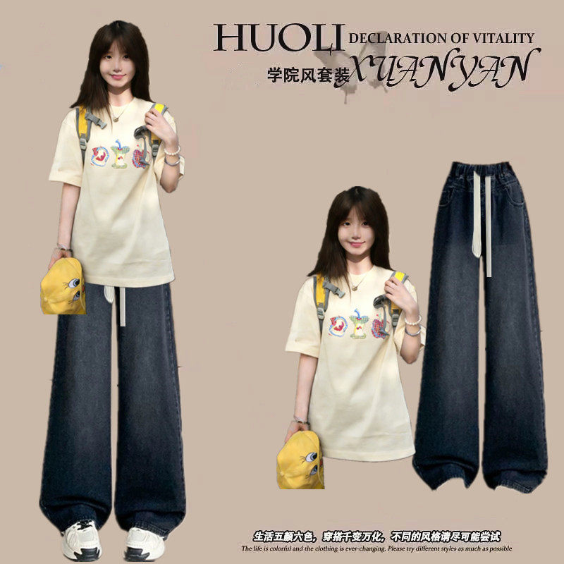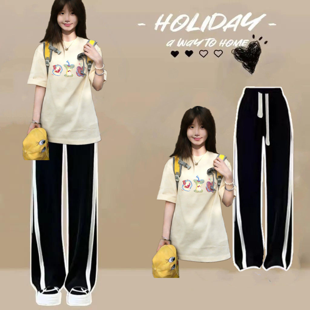 初中生2026超火夏装一整套女大童休闲运动套装高中生阔腿裤两件套
