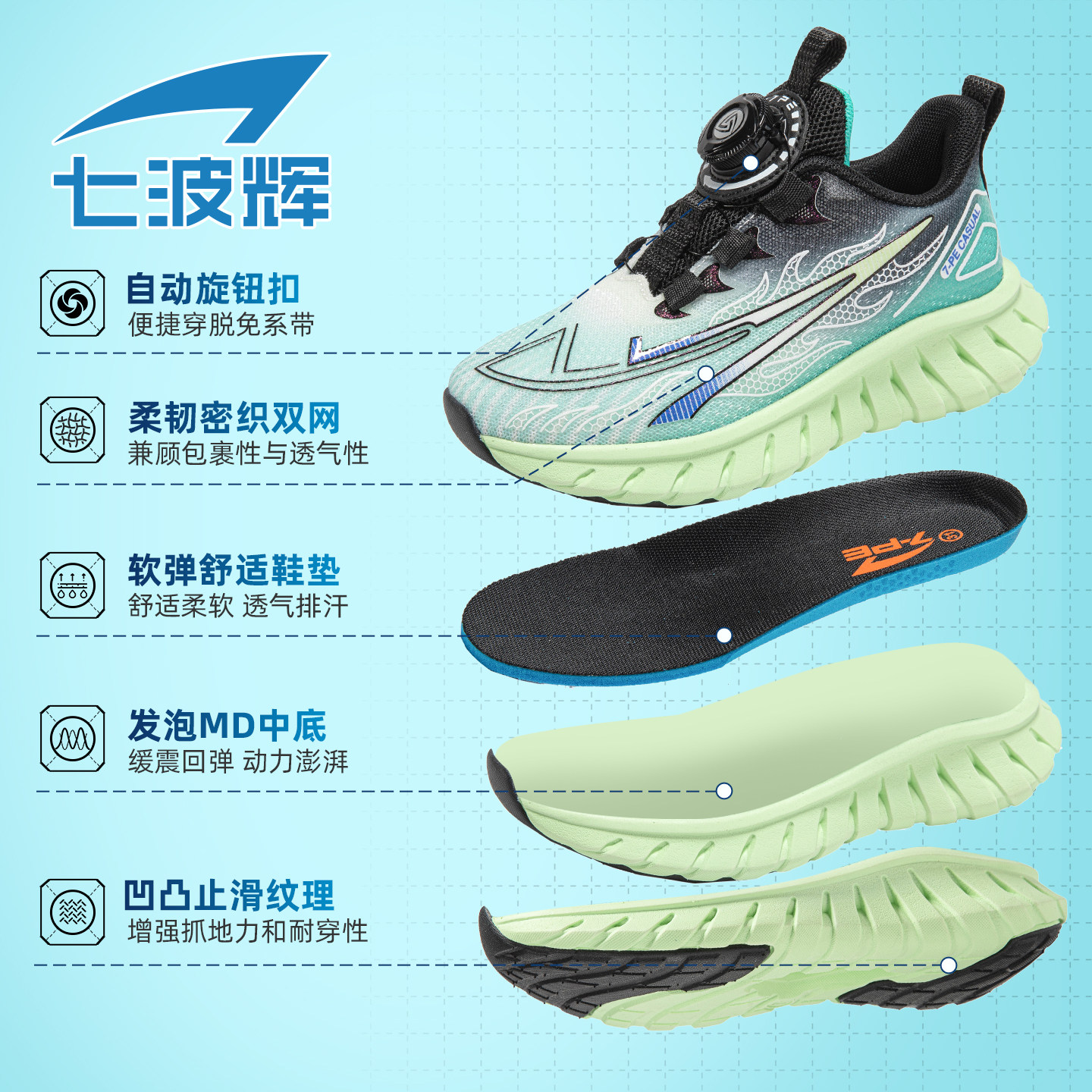 七波辉男童鞋子儿童运动鞋透气网面2026春季新款男鞋青少年跑步鞋