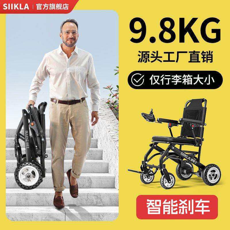 SIIKLA超轻9.8kg超轻便电动轮椅老年人折叠轻便智能全自动残疾人
