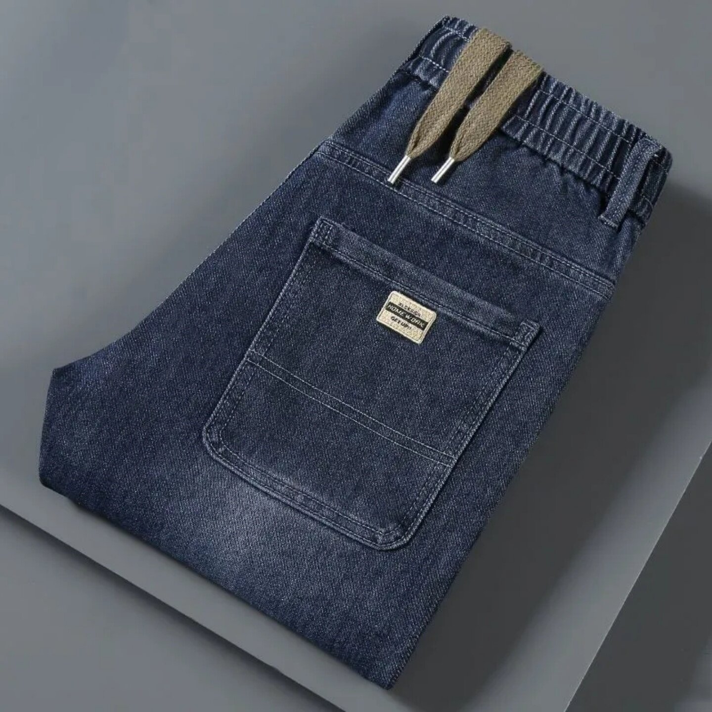 弹力牛仔裤男款松紧腰宽松直筒夏季薄款工装休闲长裤耐磨工作裤子