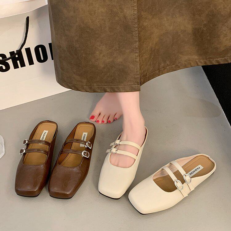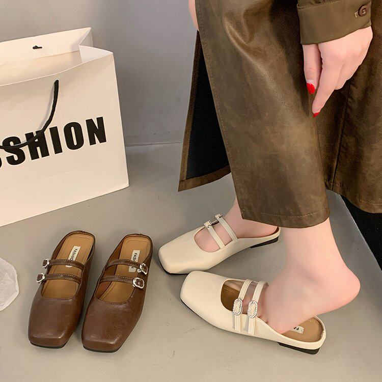 韩版玛丽珍单鞋女鞋子2026新款春夏季气质低跟包头半拖鞋法式凉拖