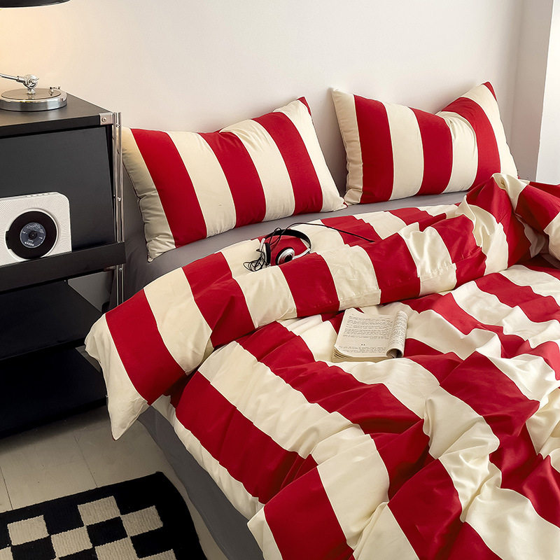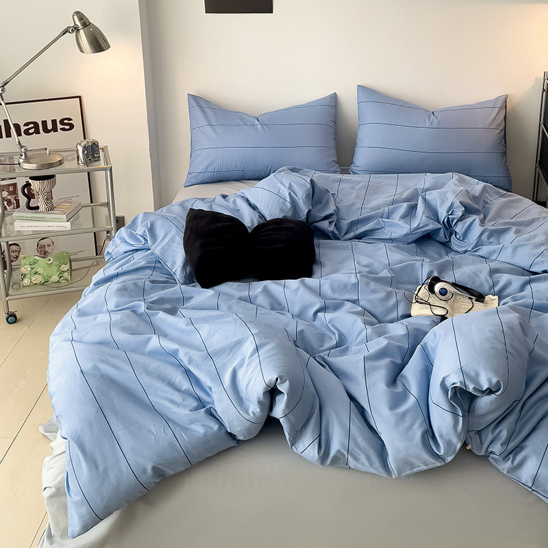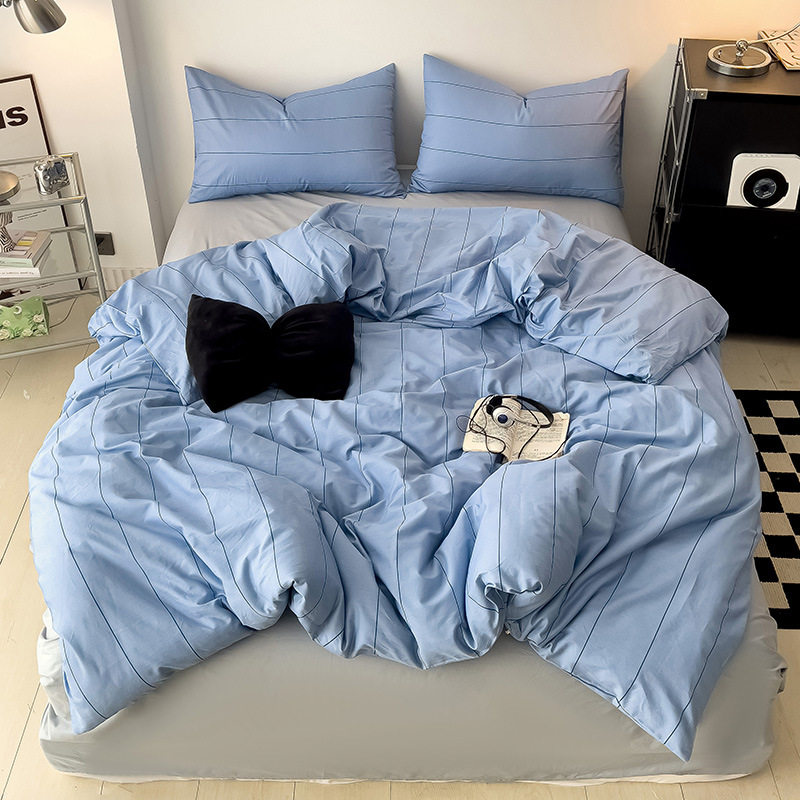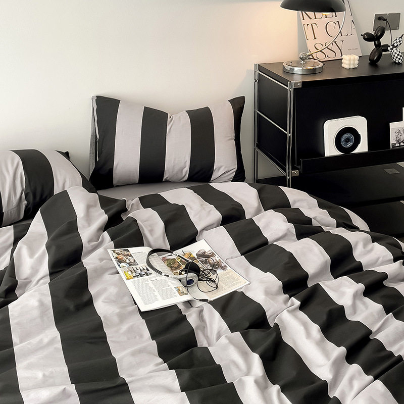 简约ins风条纹全棉四件套格子北欧纯棉宿舍三件套男生床单被套1.8