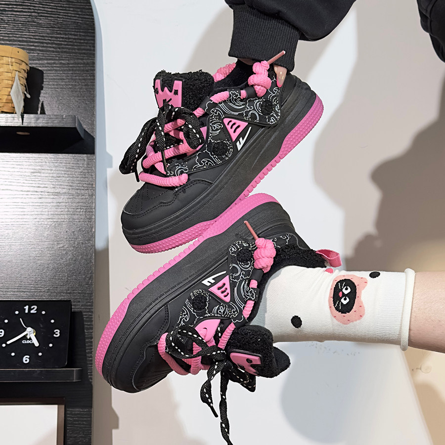 回力黑桃红女鞋加绒加厚板鞋女款冬季爆款复古休闲保暖二棉鞋潮