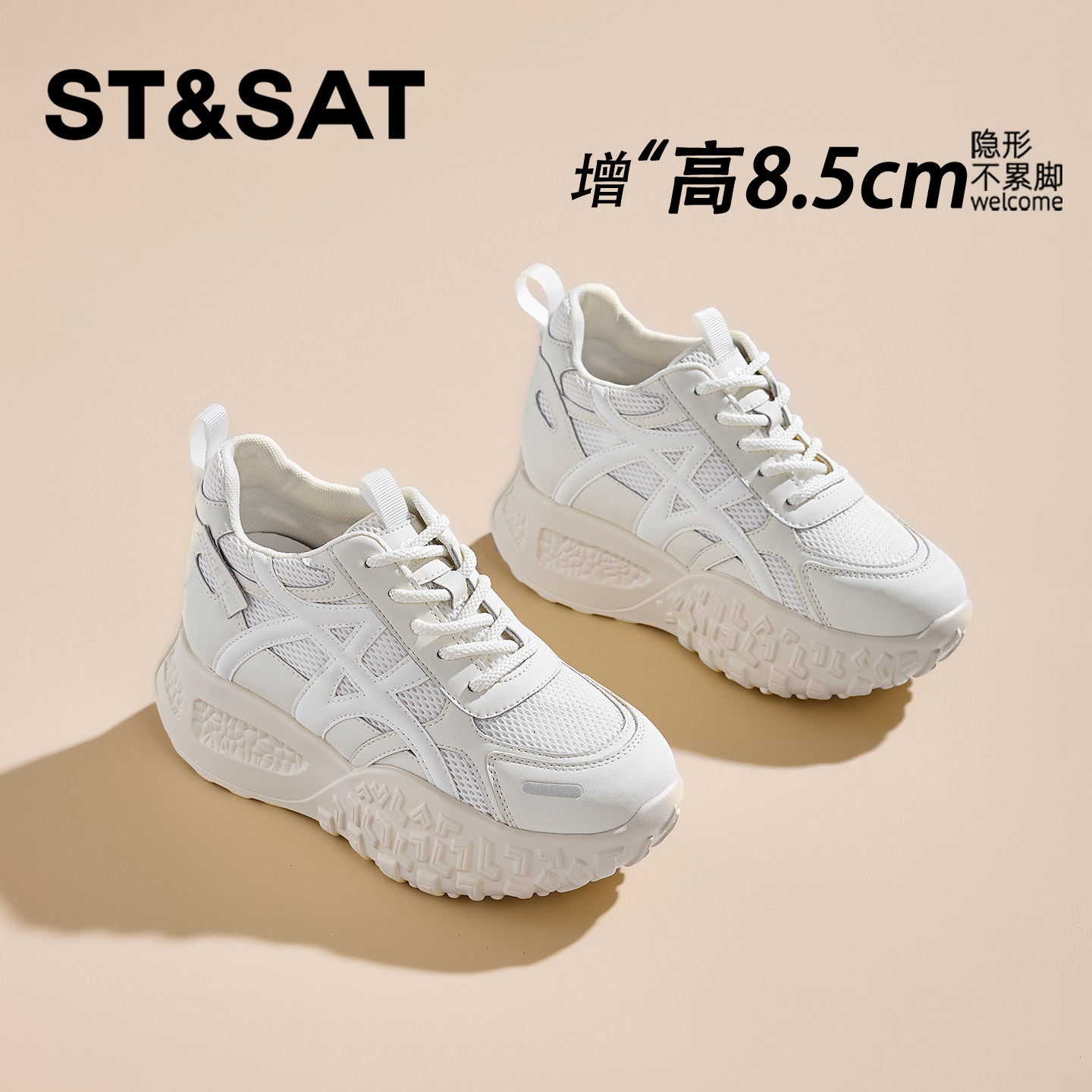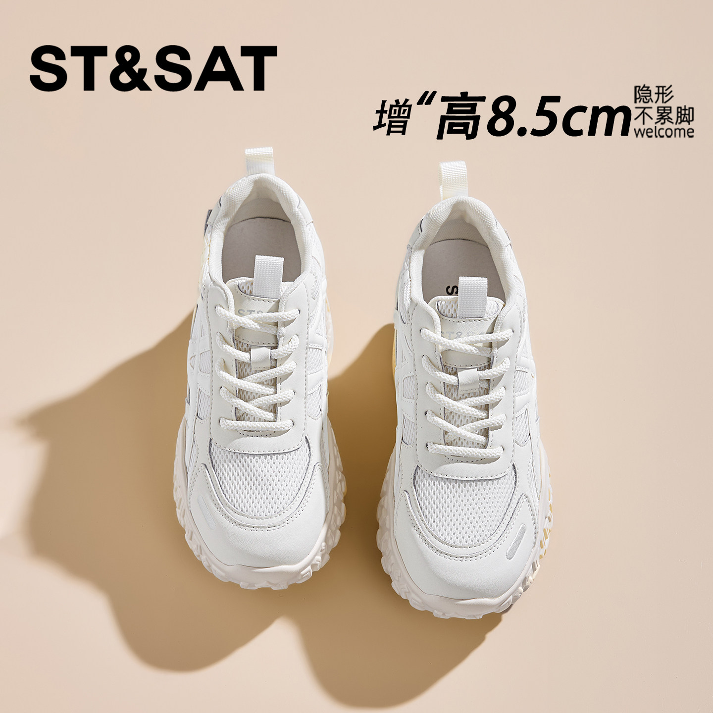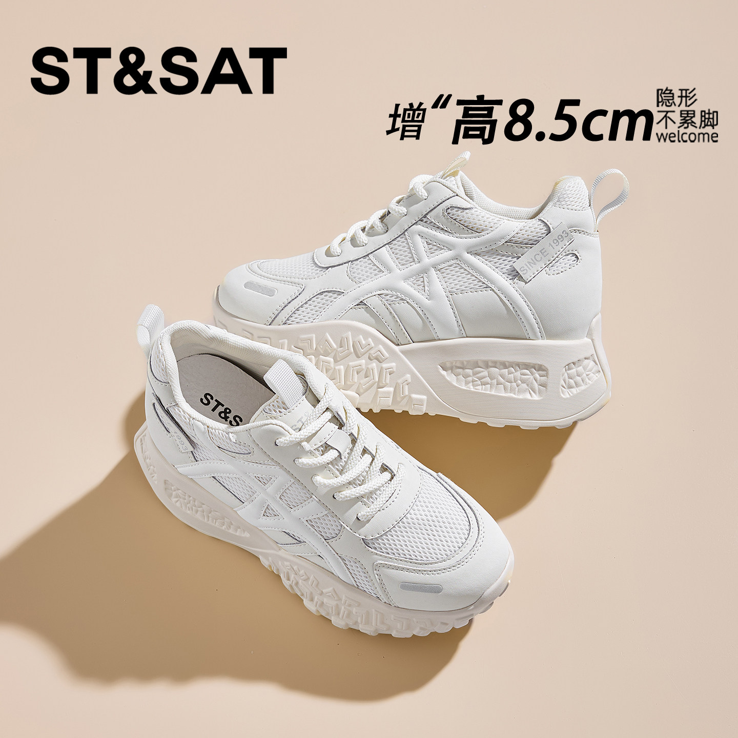 星期六8.5CM隐形内增高女鞋网面透气轻便厚底小个子老爹德训鞋