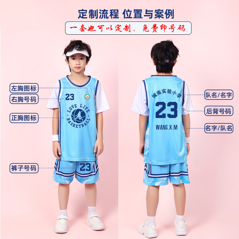 篮球服定制套装男童女儿童比赛队服美式小学生短袖速干假两件球衣